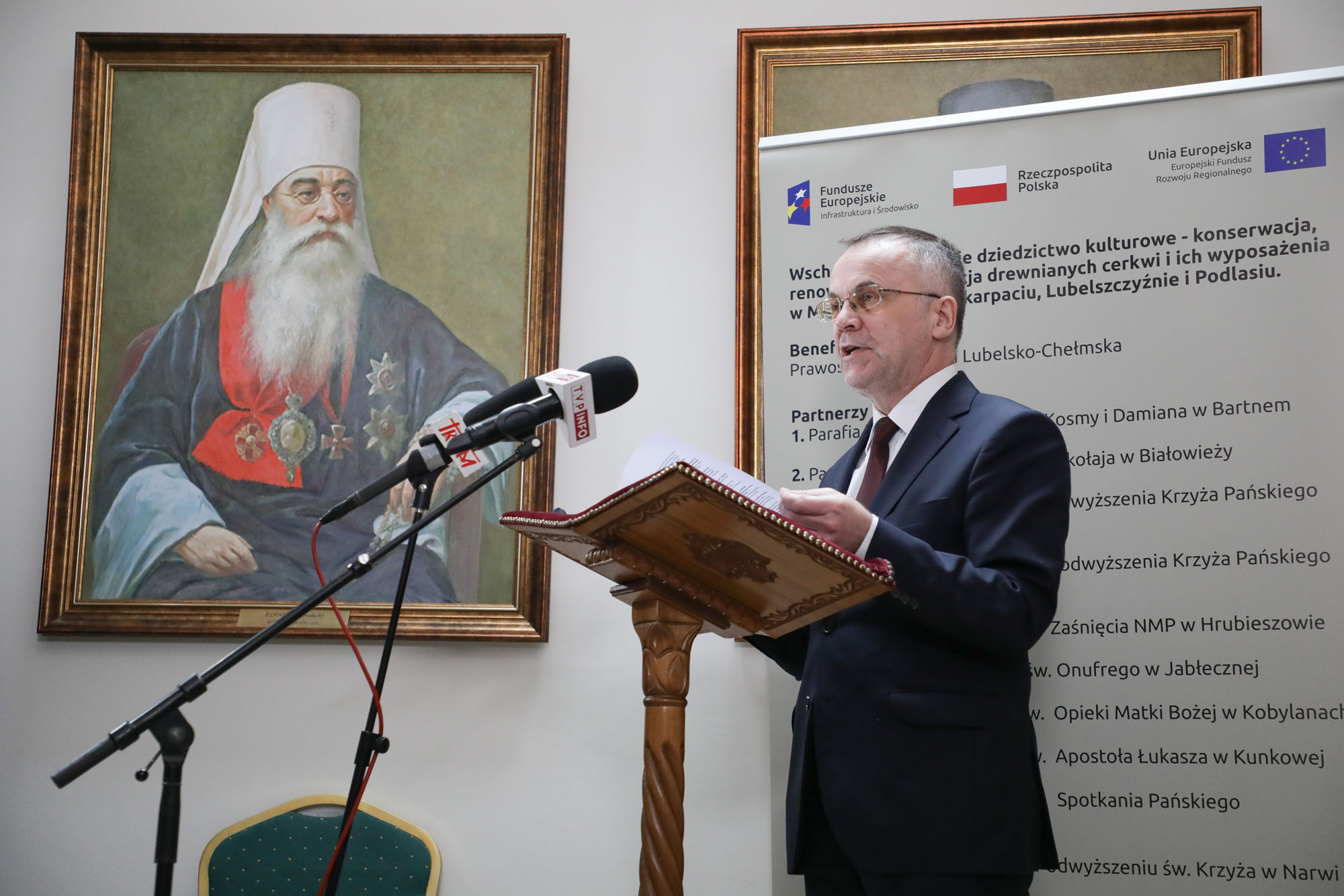 „Bezcenne, malownicze zabytki architektury cerkiewnej są materialnym wyrazem kultury wschodniosłowiańskiej na ziemiach polskich. Te zabytkowe dzieła prawosławia pozostają w życiu współczesnym żywym świadectwem wielowiekowej tradycji” - powiedział wiceminister kultury i dziedzictwa narodowego Jarosław Sellin podczas konferencji podsumowującej projekt POIiŚ „Wschodniosłowiańskie Dziedzictwo Kulturowe – konserwacja, renowacja i digitalizacja drewnianych cerkwi i ich wyposażenia w Małopolsce, na Podkarpaciu, Lubelszczyźnie i Podlasiu”, która w poniedziałek odbyła się w Centrum Diecezjalnym w Lublinie.