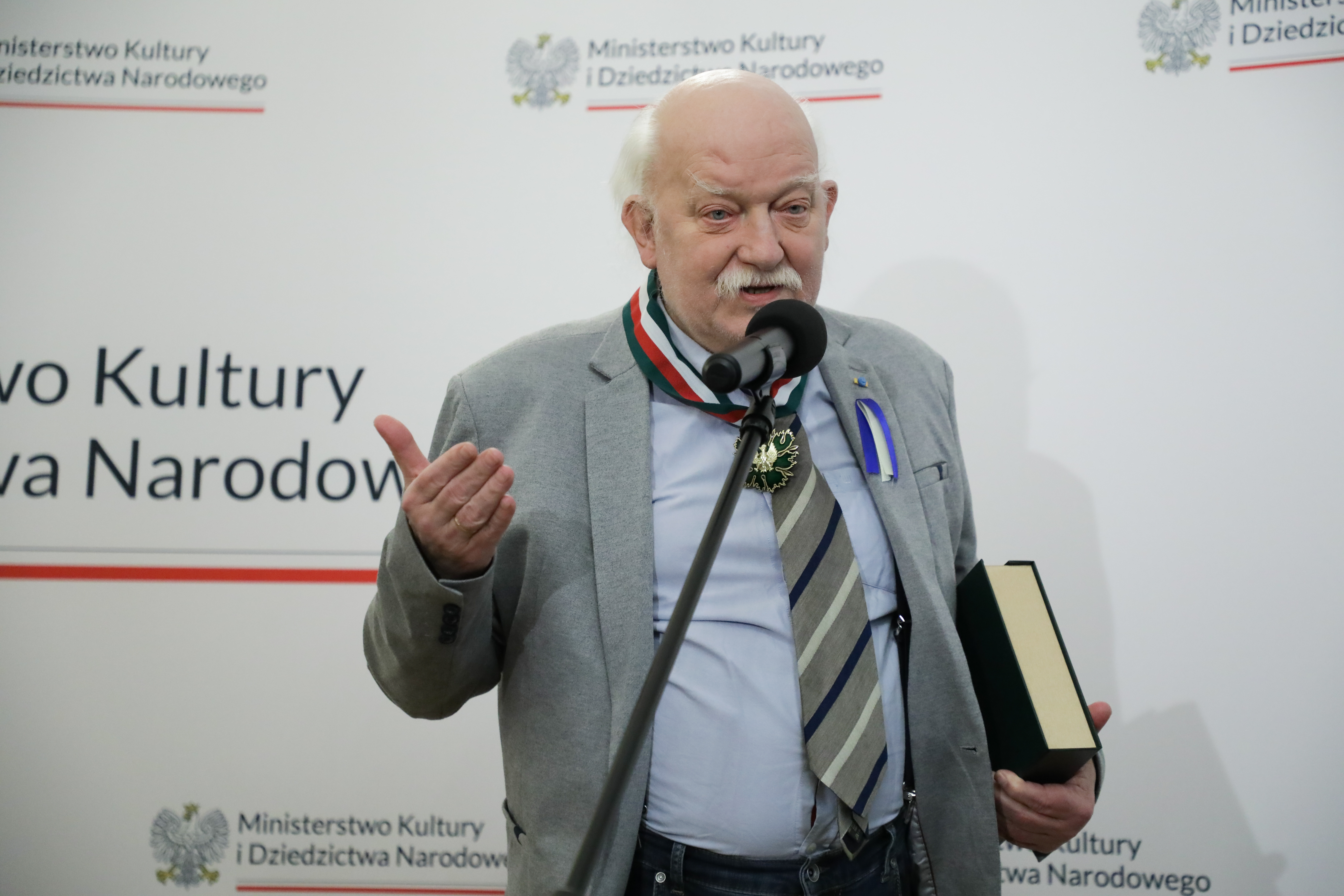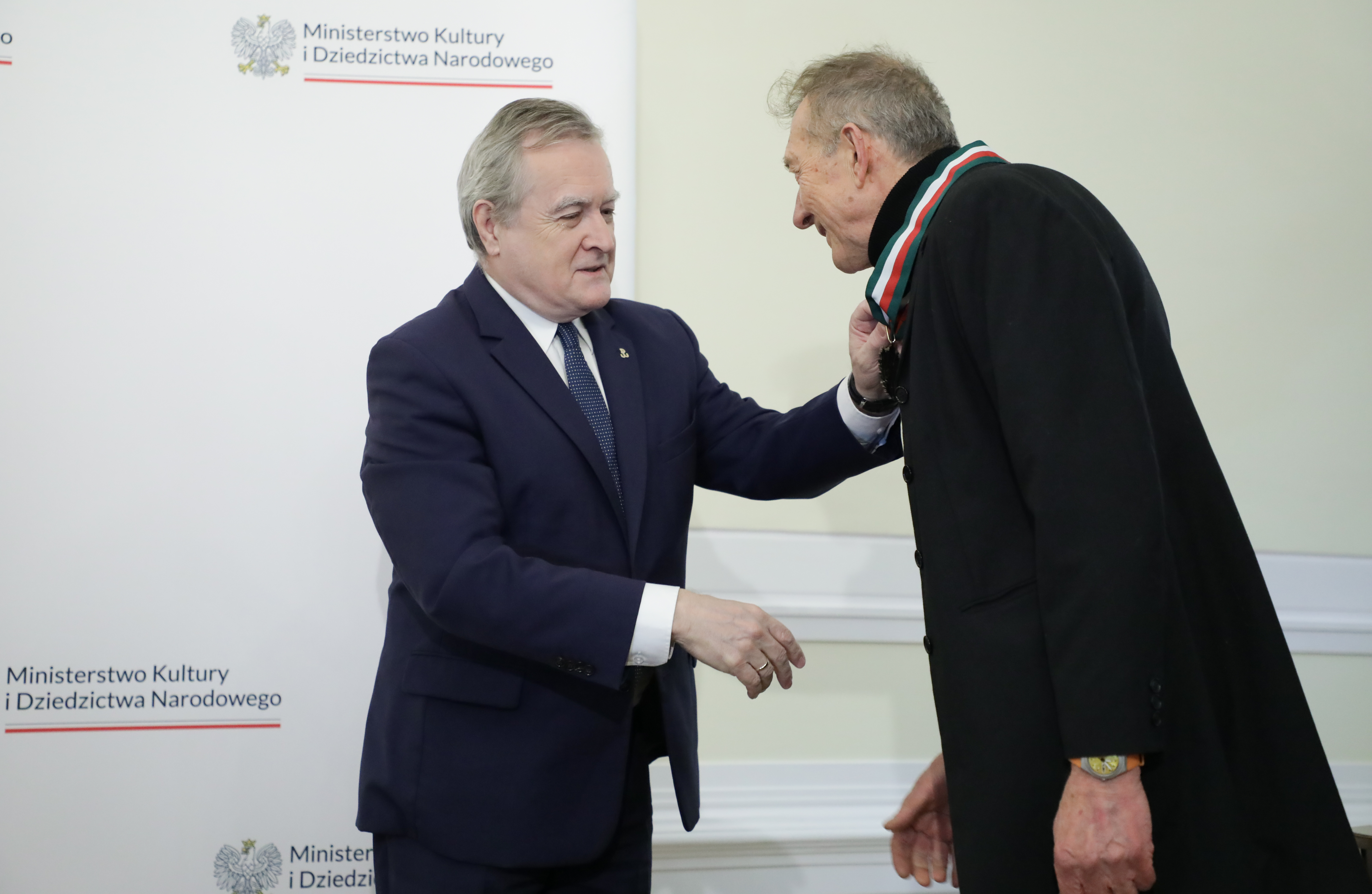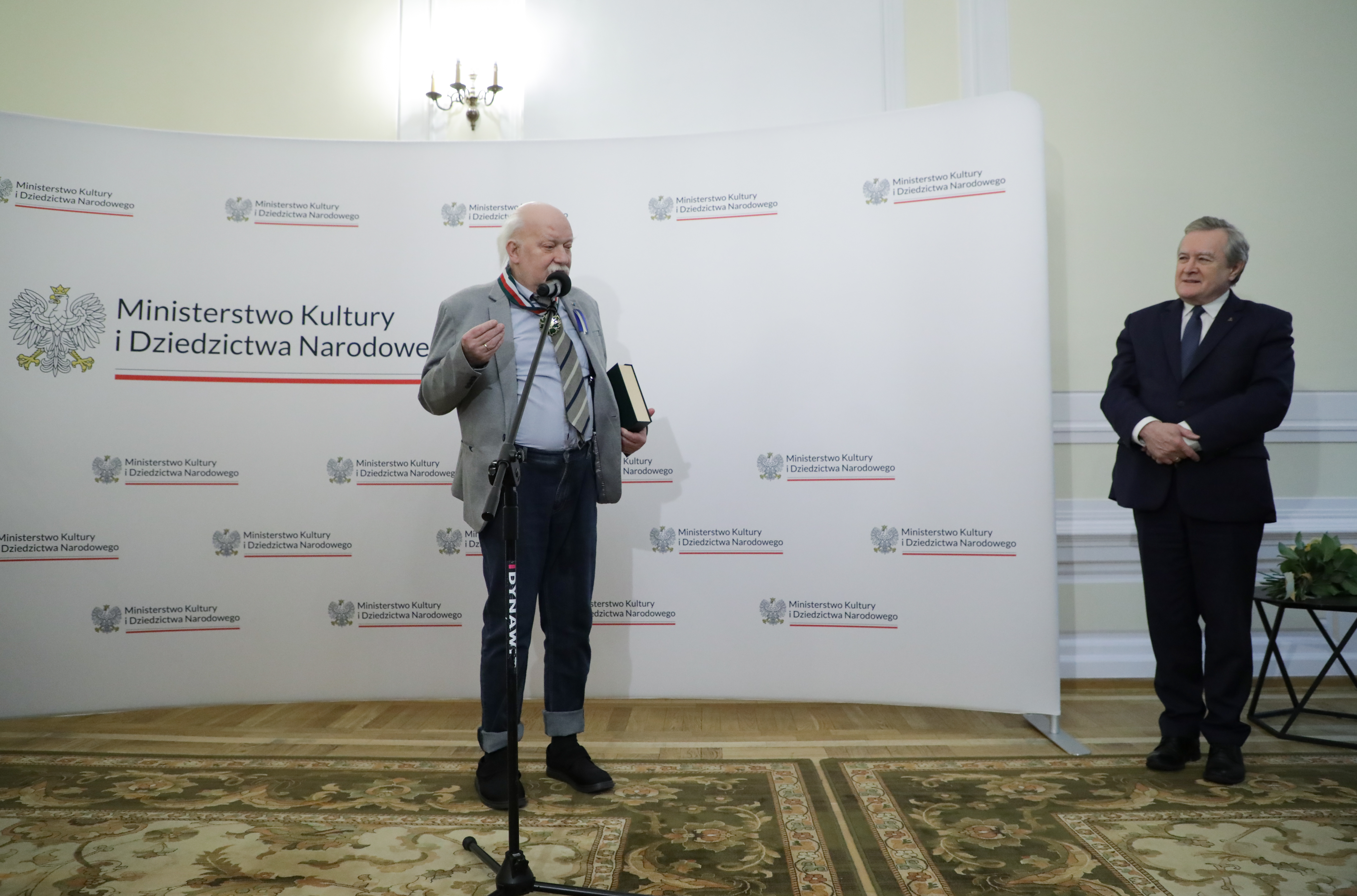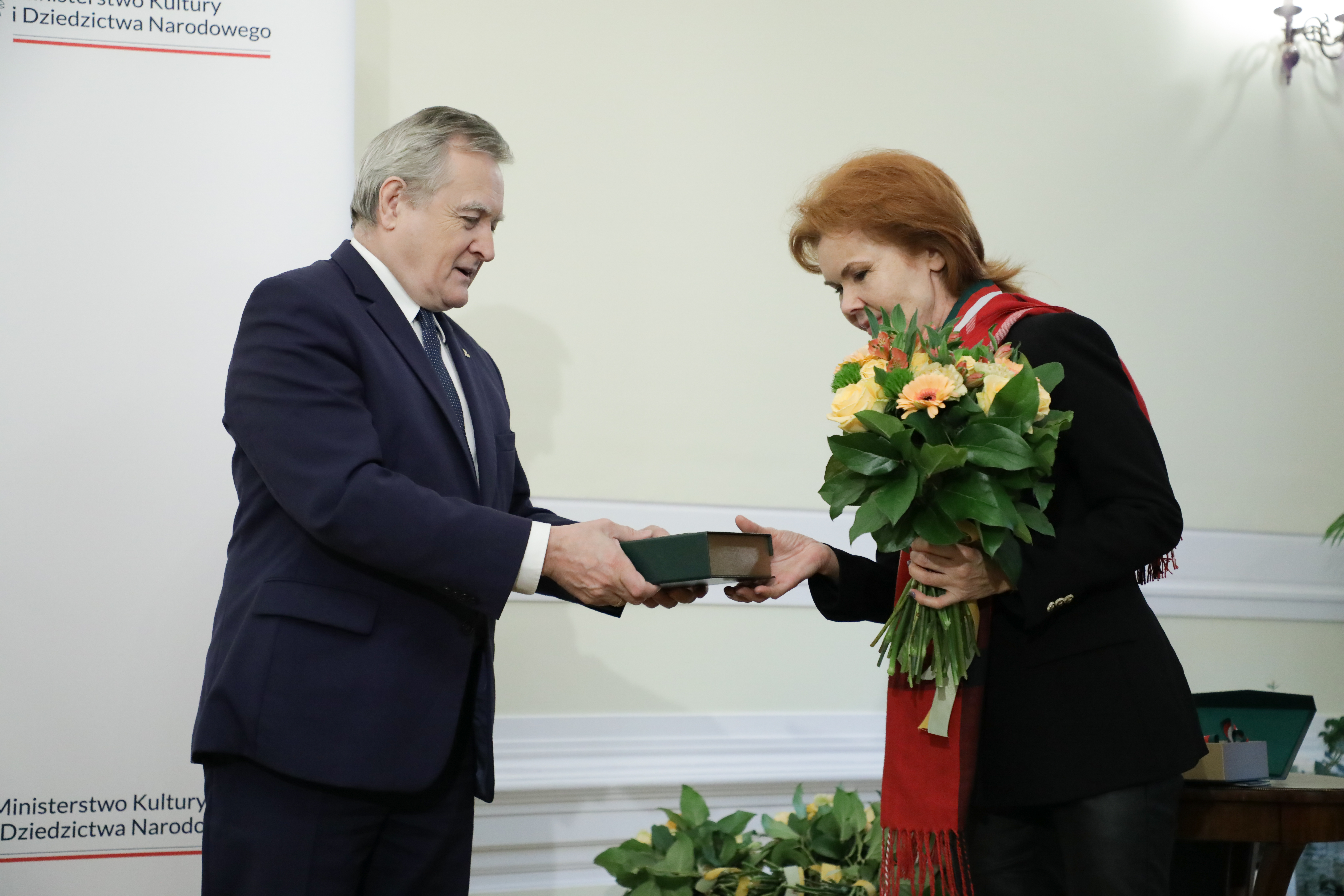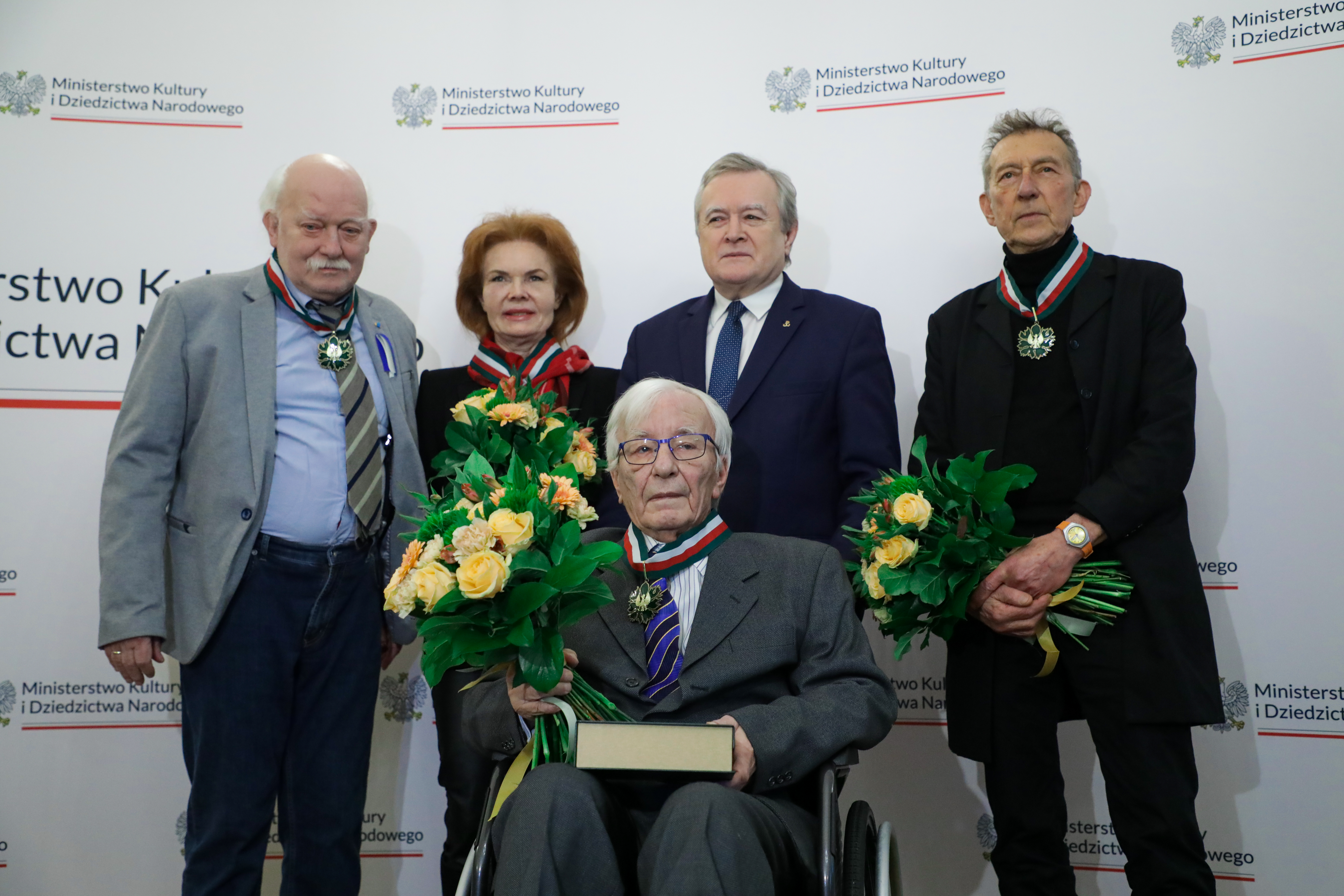 „Złoty Medal Gloria Artis to najwyższe wyróżnienie w dziedzinie polskiej kultury, jakie polski rząd w imieniu społeczeństwa przekazuje najwybitniejszym przedstawicielom polskiej kultury za ich zasługi” – powiedział dziś wicepremier, minister kultury i dziedzictwa narodowego prof. Piotr Gliński podczas uroczystości wręczenia Złotych Medali „Zasłużony Kulturze Gloria Artis”. Najwyższym odznaczeniem uhonorowani zostali: artysta ceramik Marek Cecuła, wydawca i producent filmowy Mirosław Chojecki, malarz Antoni Fałat oraz flecistka i pedagog Jadwiga Kotnowska.
