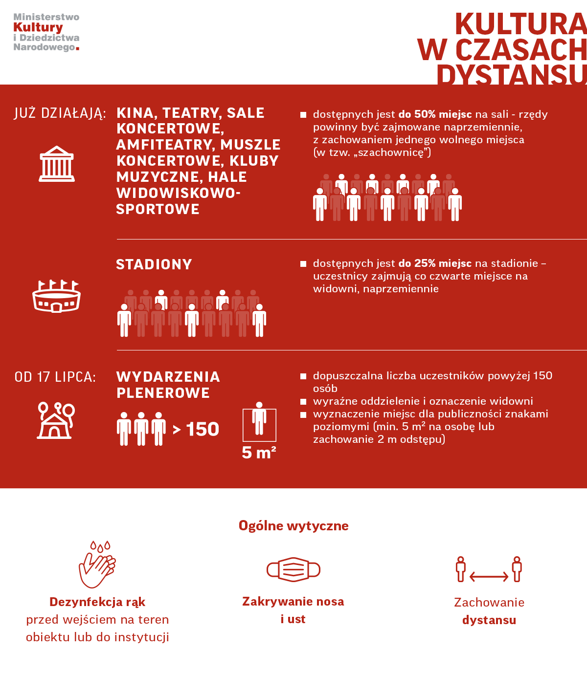 Zasady dystansu społecznego dla wydarzeń kulturalnych i rozrywkowych: