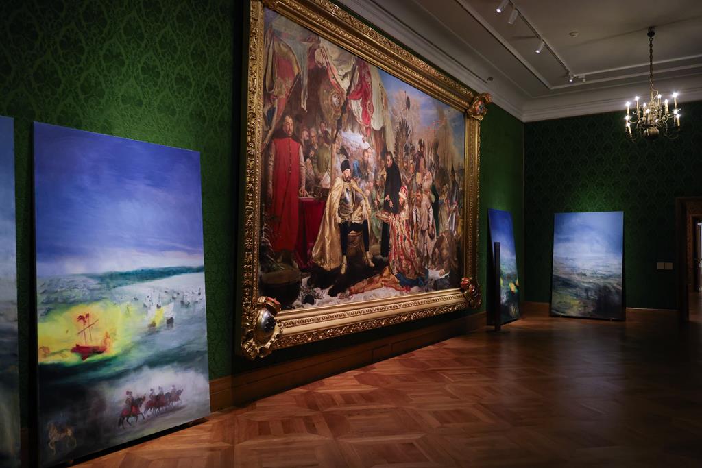 Wystawa obrazów Łukasza Stokłosy w Zamku Królewskim w Warszawie stanowi refleksję nad malarstwem historycznym prezentowanym w zamkowych wnętrzach. To spotkanie dwóch sposobów opowiadania o przeszłości. Z jednej strony monumentalnych narracji XIX wieku autorstwa Jana Matejki, z drugiej – spokojnych, pozbawionych postaci obrazów współczesnego twórcy. Zestawione ze sobą tworzą przestrzeń do zastanowienia się nad tym, jak dziś postrzegamy historię i jaką rolę pełnią obecnie dawne rezydencje władców.