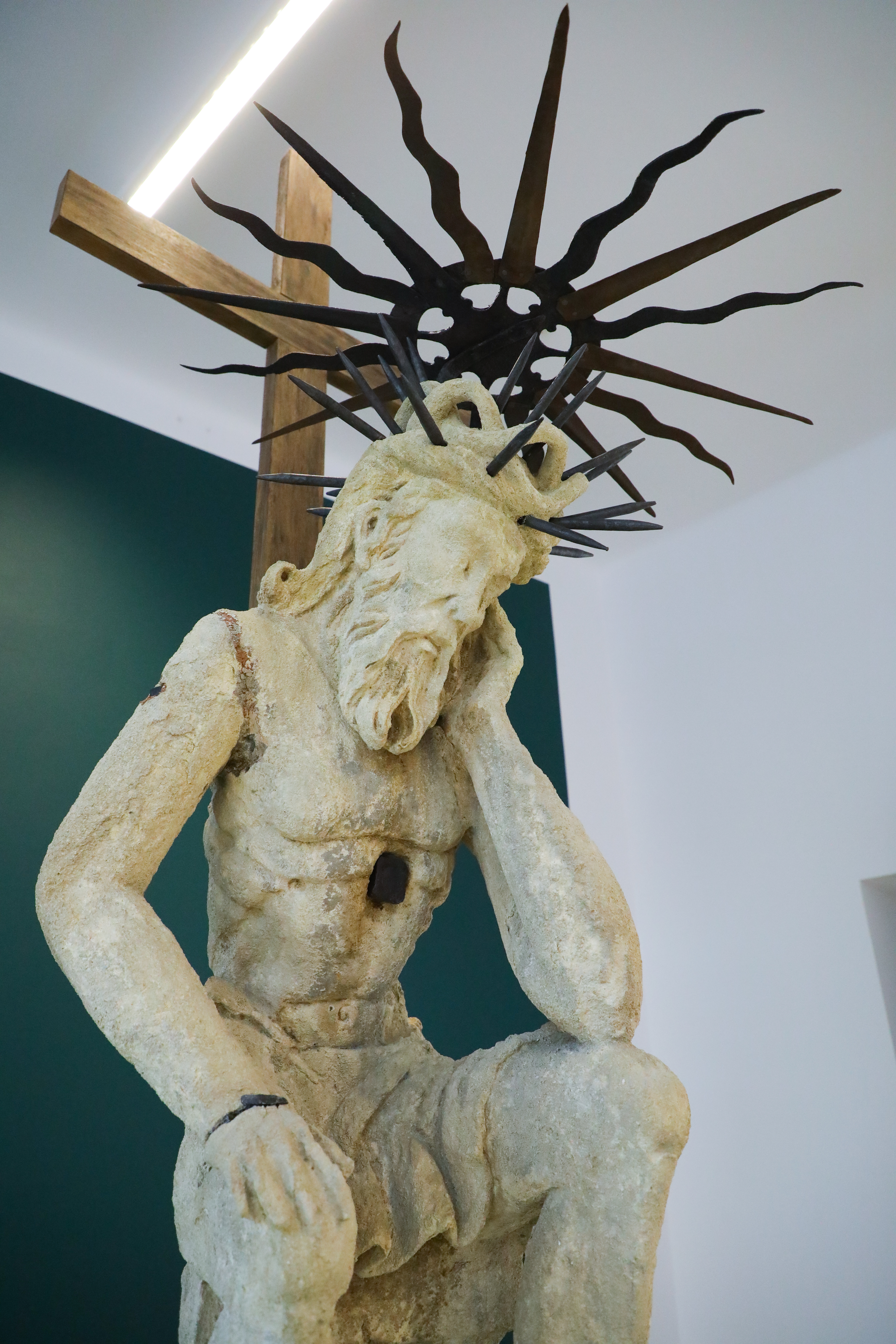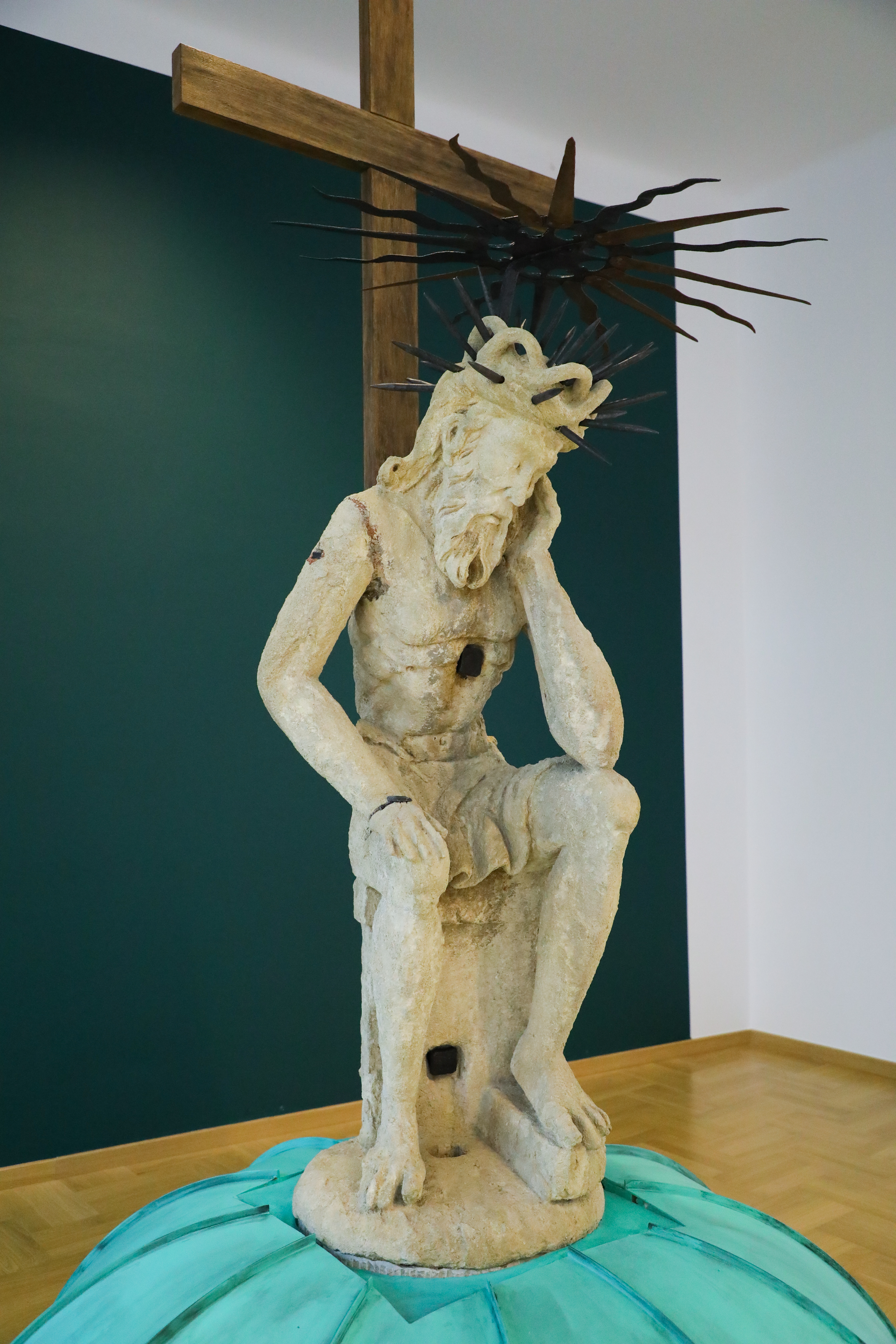W 2021 roku ważąca 280 kilogramów wapienna rzeźba ze względu na postępujący proces destrukcji po raz pierwszy w swojej historii została zdemontowana z kopuły kaplicy Boimów we Lwowie, a następnie przetransportowana do Polski, gdzie poddano ją wnikliwym badaniom oraz konserwacji. Na wystawie można nie tylko z bliska zobaczyć odrestaurowaną figurę Chrystusa Frasobliwego wraz z krzyżem, ale także szczegółowo prześledzić proces jej renowacji.