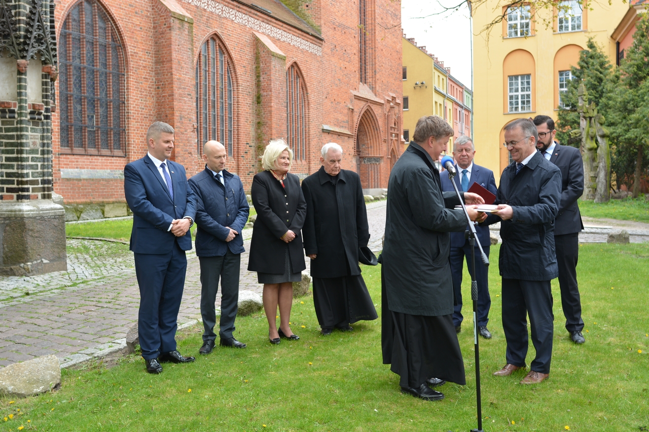 W uroczystości przekazania umowy na dofinansowanie projektu „Rozwój zasobów kulturalnych poprzez prace konserwatorsko-restauratorskie w zabytkowej Kolegiacie pw. NMP Królowej Świata w Stargardzie” uczestniczyli: proboszcz Kolegiaty ks. kan. dr Janusz Posadzy, który odebrał z rąk wiceministra umowę, oraz przedstawiciele lokalnych władz – wicewojewoda zachodniopomorski Marek Sobczuk, prezydent Stargardu Rafał Zając wraz wiceprezydent Ewa Sowa oraz poseł na Sejm RP Michał Jach.