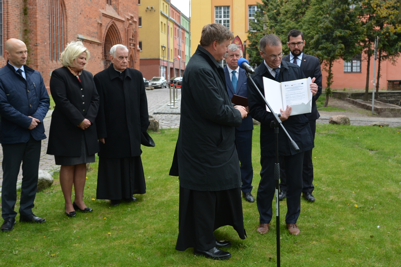 Wiceminister Sellin podkreślił, że projekt „Rozwój zasobów kulturalnych poprzez prace konserwatorsko-restauratorskie w zabytkowej Kolegiacie pw. NMP Królowej Świata w Stargardzie” jest pierwszą inwestycją w sektorze kultury złożoną do dofinansowania w trybie pozakonkursowym i pierwszą, która otrzymała w tym trybie dofinansowanie ze środków Europejskiego Funduszu Rozwoju Regionalnego.