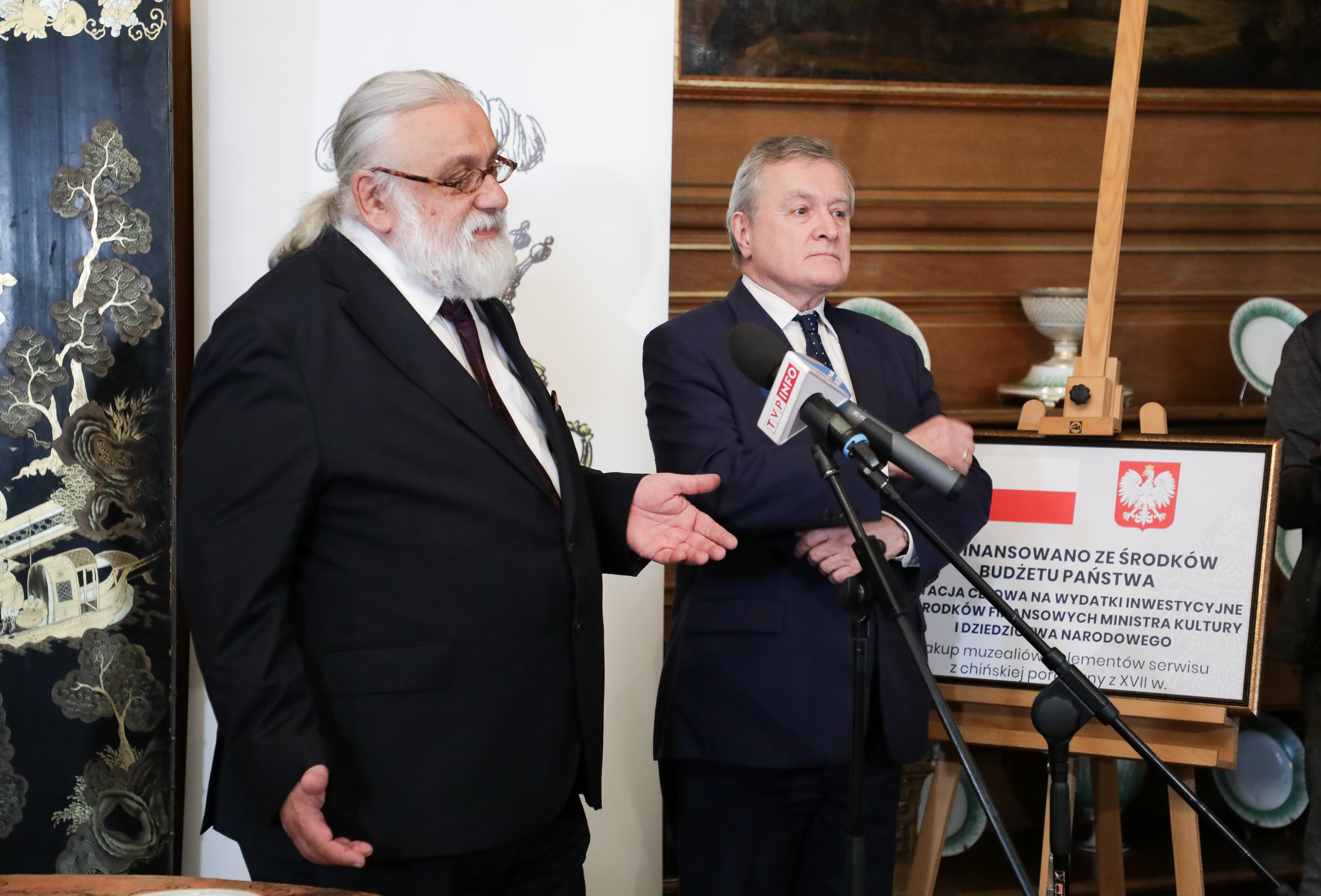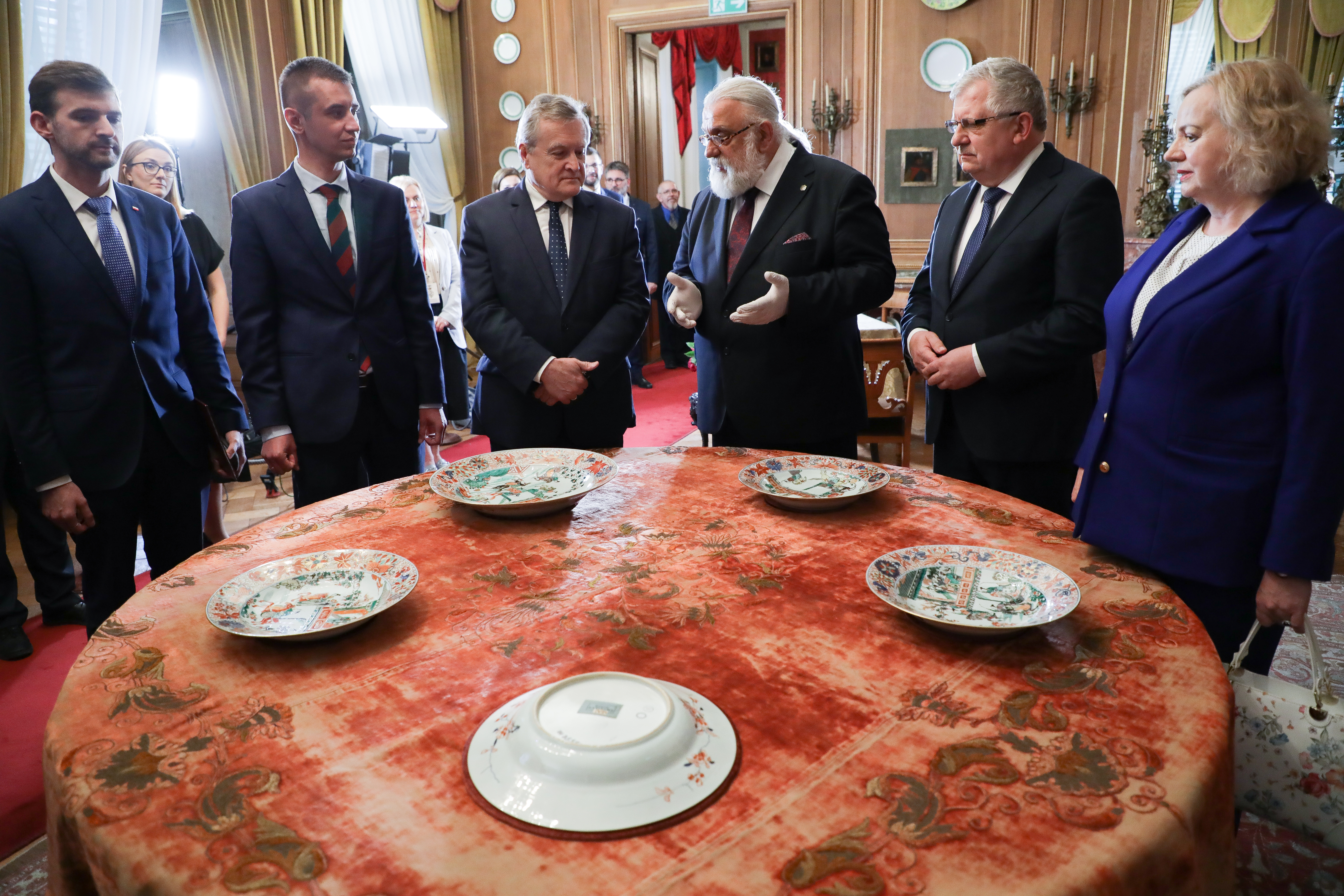 Minister kultury i dziedzictwa narodowego podkreślił, że nabyte porcelanowe talerze i półmisek stanowiły dar cesarza chińskiego dla polskiego króla Jana III Sobieskiego, który następnie podarował je rodzinie Czartoryskich.