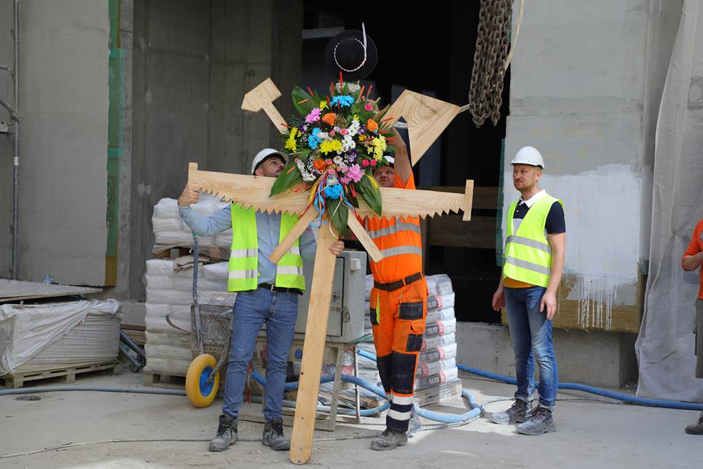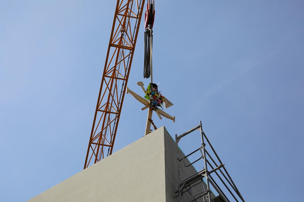 Zawieszenie wiechy na budynku Teatru im. Stefana Żeromskiego w Kielcach
