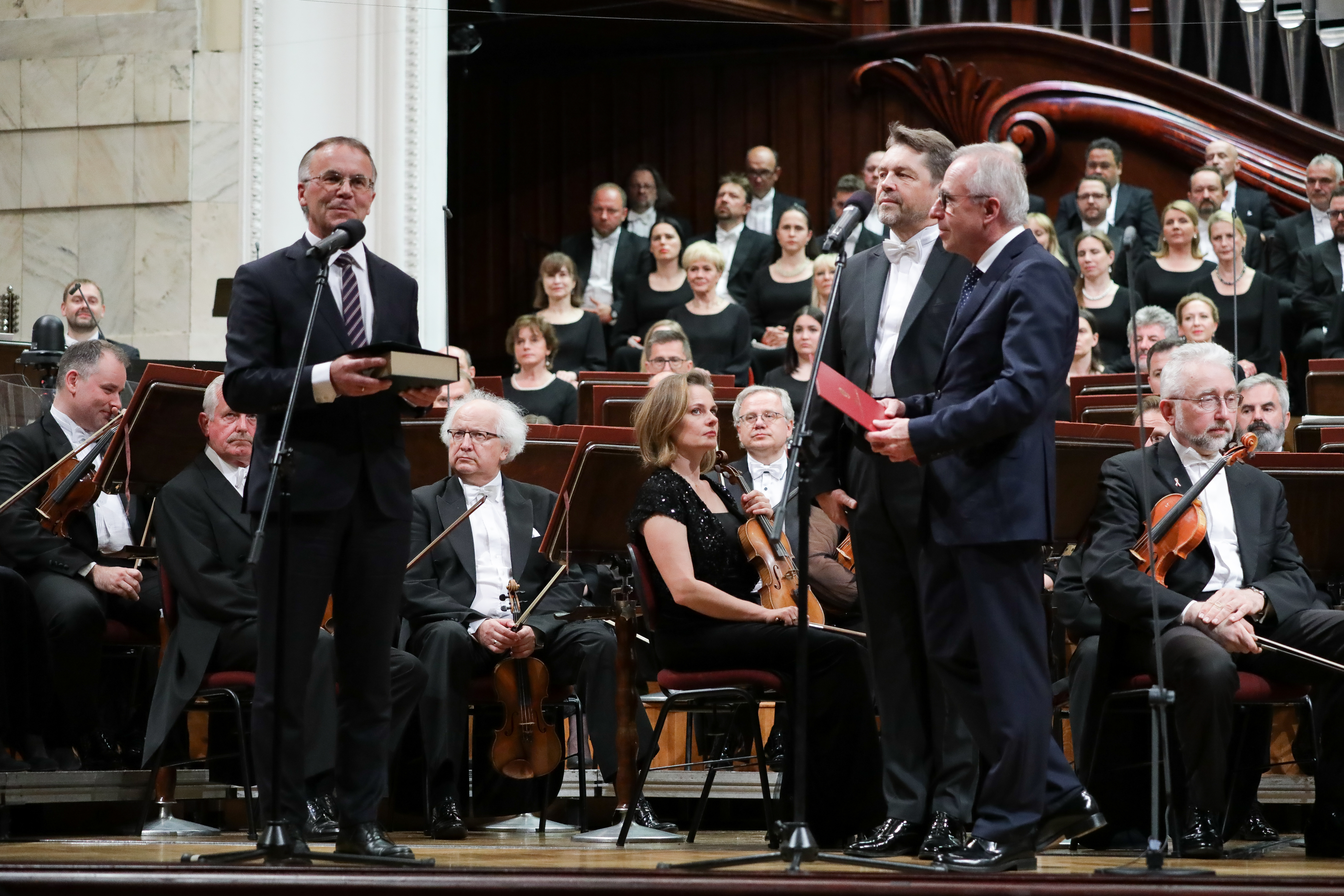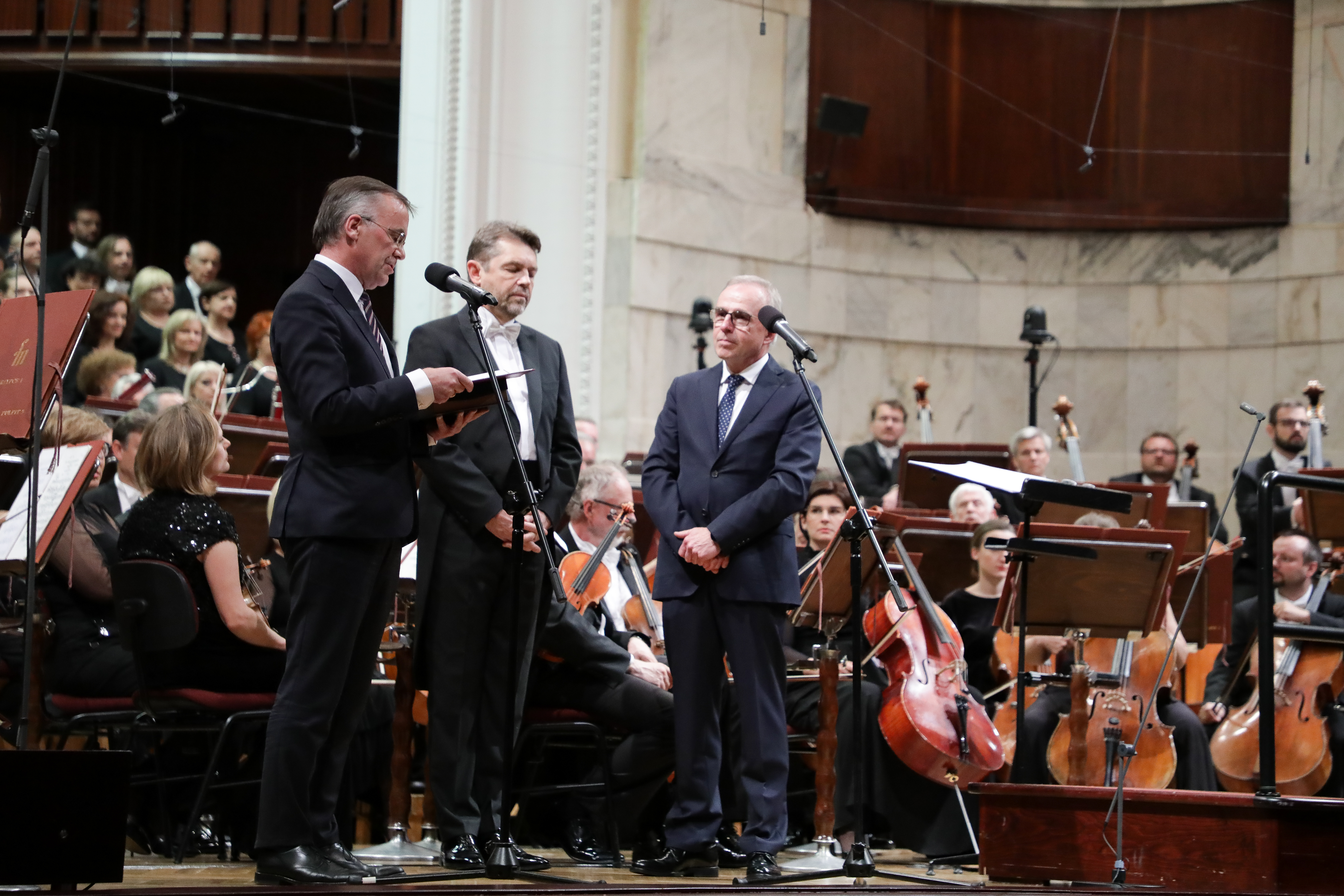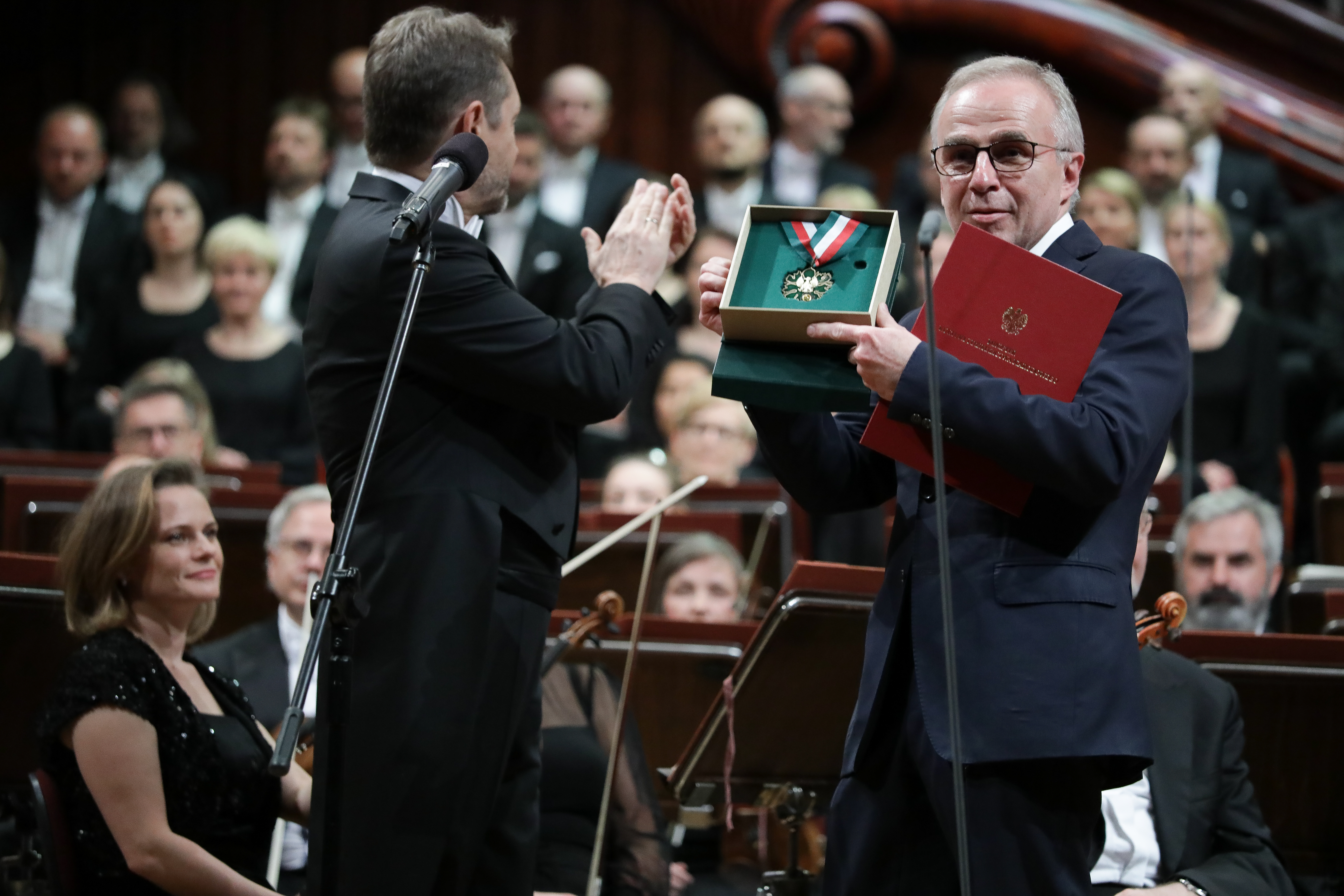 Po odczytaniu listu wiceminister Jarosław Sellin przekazał na ręce dyrektora Wojciecha Nowaka Złoty Medal „Zasłużony Kulturze Gloria Artis” przyznany Filharmonii Narodowej przez ministra kultury i dziedzictwa narodowego prof. Piotra Glińskiego.