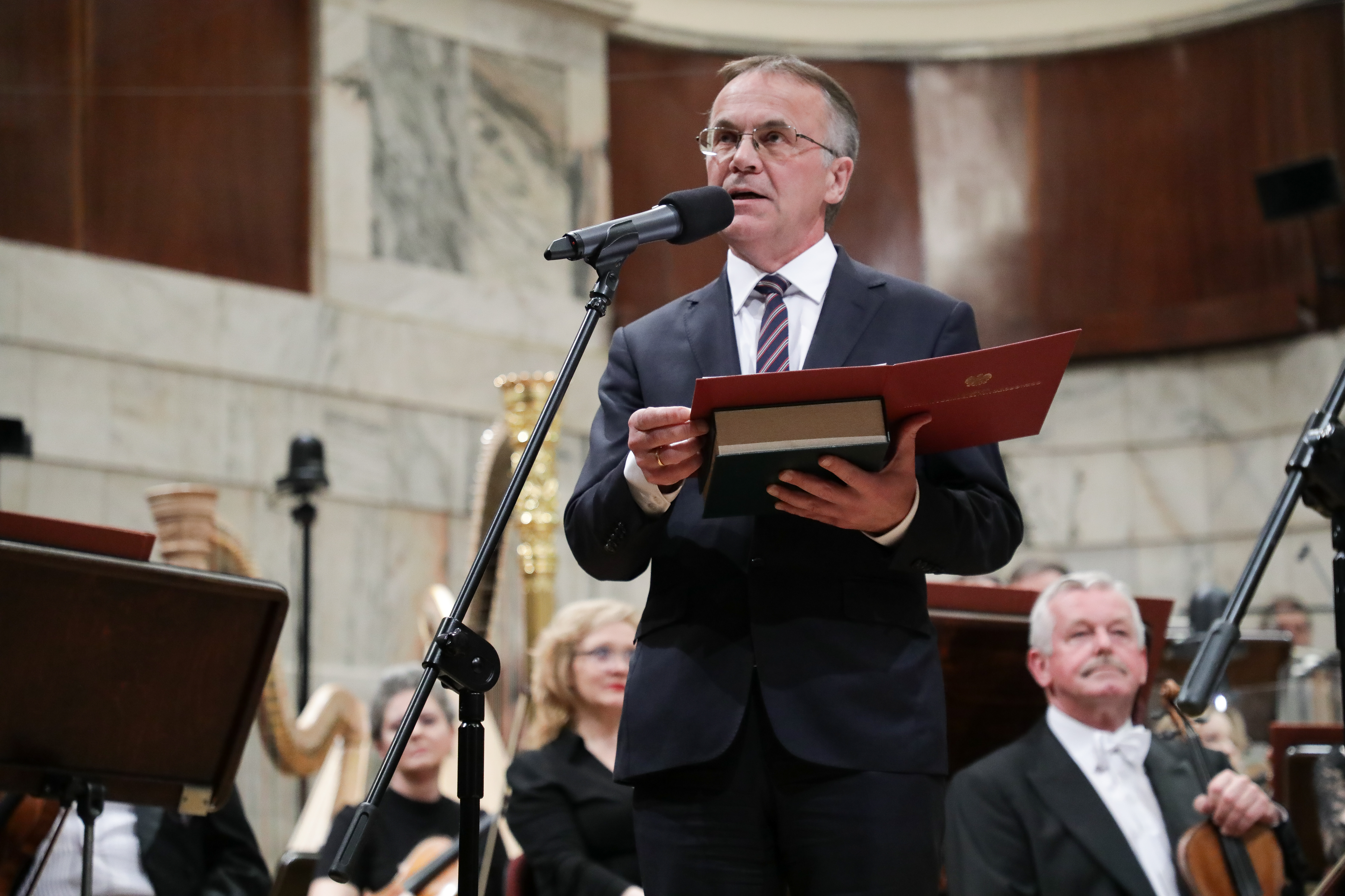 Minister kultury i dziedzictwa narodowego przypomniał o zburzeniu siedziby Filharmonii w czasie II wojny światowej i podkreślił wysiłek kolejnych dyrektorów Filharmonii, którzy doprowadzili do jej rozkwitu, realizując niestrudzenie swoje wizje artystyczne.