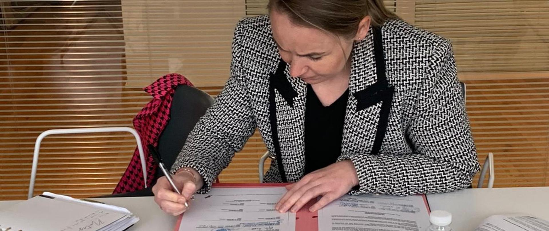 Anna Godoj-Ciszkowska, chargé d'affaires of the Embassy of Poland in Kuwait signed the EU National Institutes for Culture Statute Document. At the meeting at the Embassy of France possibilities for cooperation in the current year were also discussed. Other cluster members in Kuwait: Austria, Bulgaria, France, Germany, Greece, Spain.