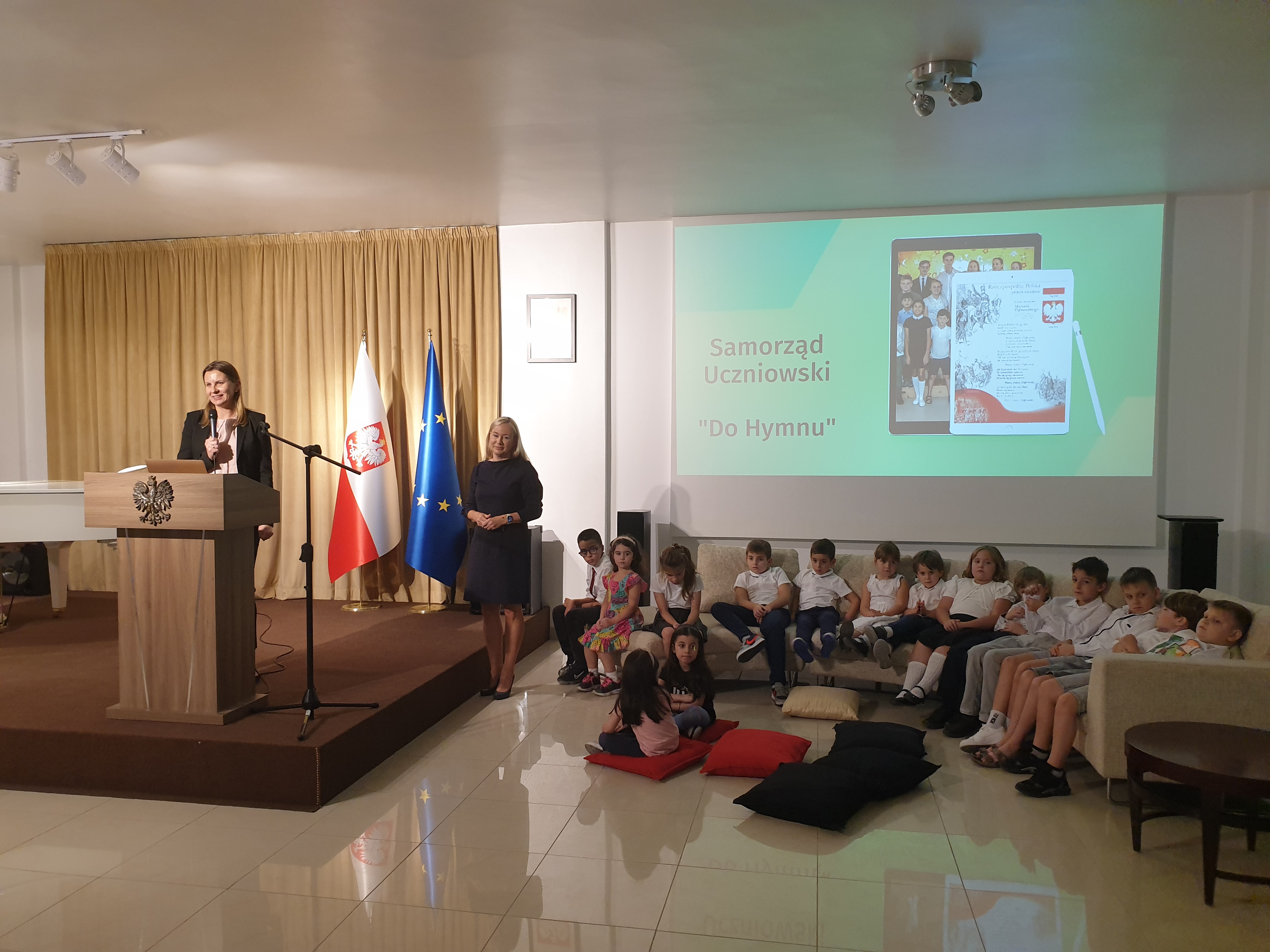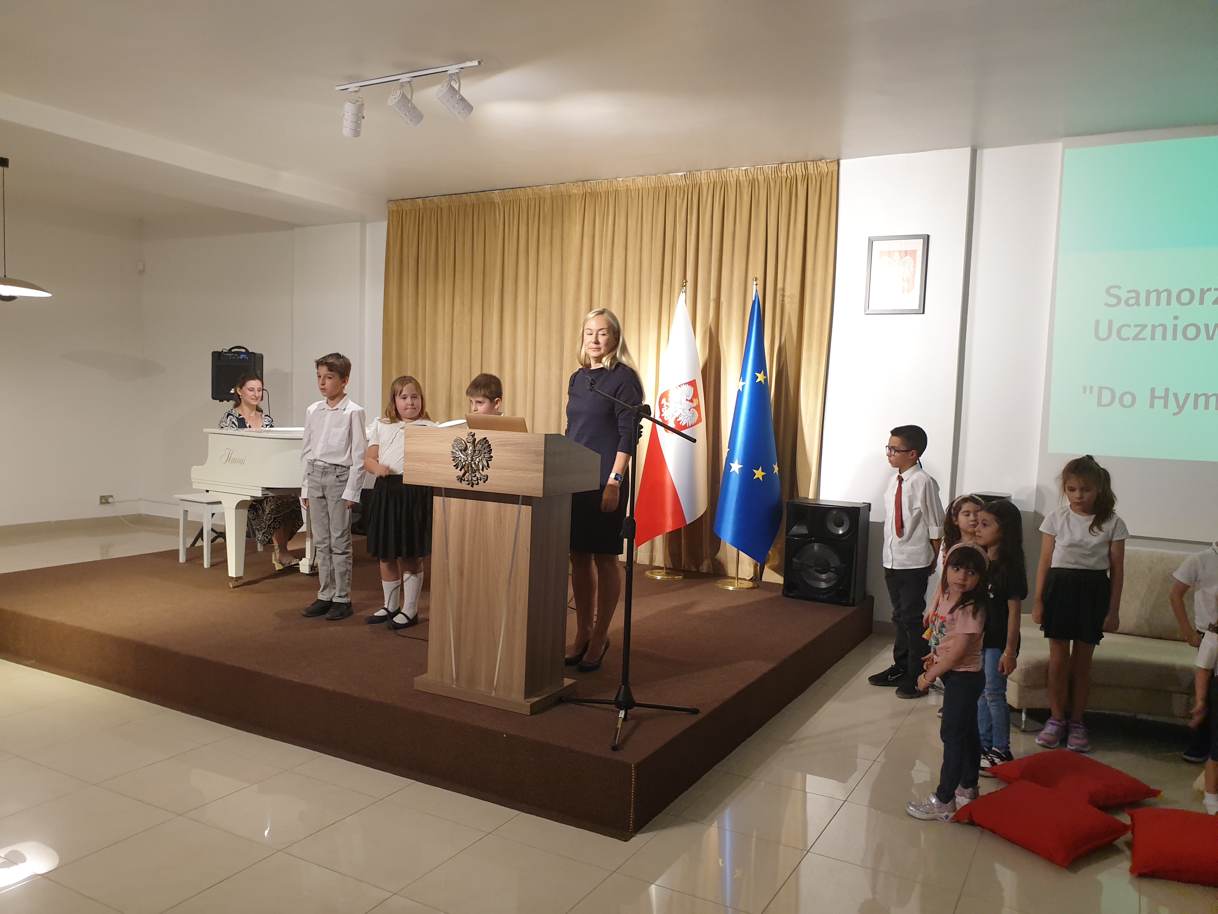 On Tuesday, September 17, 2024, the Polish Embassy in Kuwait hosted the ceremonial opening of the 2024/2025 school year. The ceremony was opened by singing the national anthem. The school principal, Iwona Konieczka, officially welcomed the approximately forty students and their accompanying parents. She addressed especially warm words to those who were visiting the school community for the first time. The Polish Consul in Kuwait, Mrs. Katarzyna Hopkin, extended her wishes to all students, parents and the entire teaching staff that this new school year would be a time of discovering new passions and interests, building valuable friendly relationships, and that the effort and hardships undertaken would be transferred into academic results, so that everyone could enjoy the knowledge and skills they had acquired.