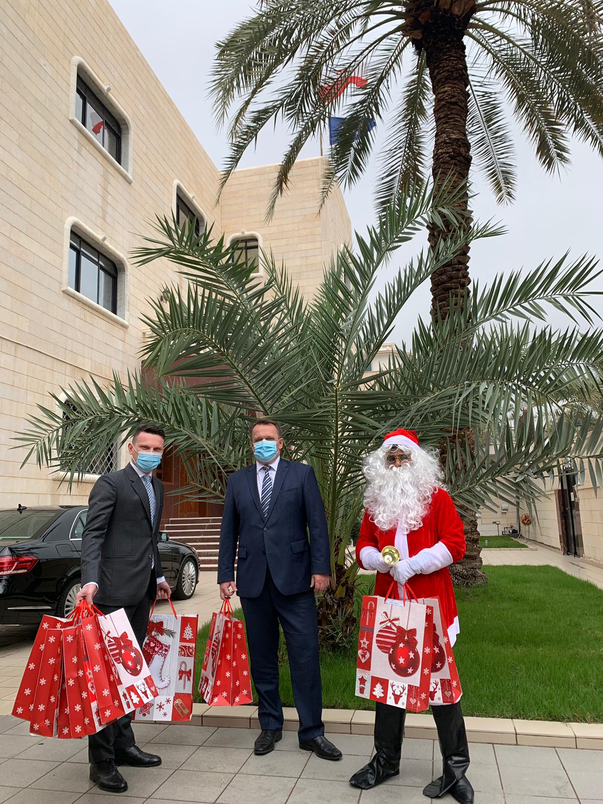 Mikołajki to tradycyjna, polska nazwa święta ku czci świętego Mikołaja, biskupa Miry, obchodzonego 6 grudnia w katolicyzmie i prawosławiu. Z tej okazji Ambasador RP w Kuwejcie Paweł Lechowicz oraz Konsul RP w Kuwejcie Sebastian Kmita wraz ze Świętym Mikołajem wręczyli upominki polskim dzieciom mieszkającym w Kuwejcie.