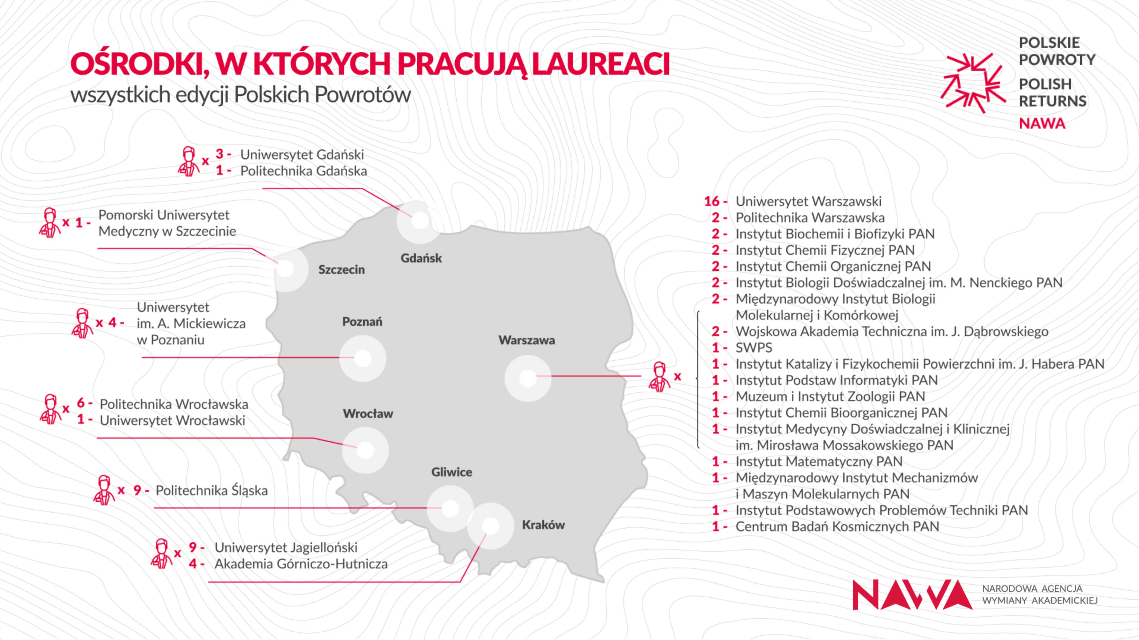 Osobą do kontaktu w sprawach programu Polskie Powroty NAWA jest Pani Katarzyna Pietruszyńska, e-mail: katarzyna.pietruszynska@nawa.gov.pl; tel. + 48 22 390-35-56