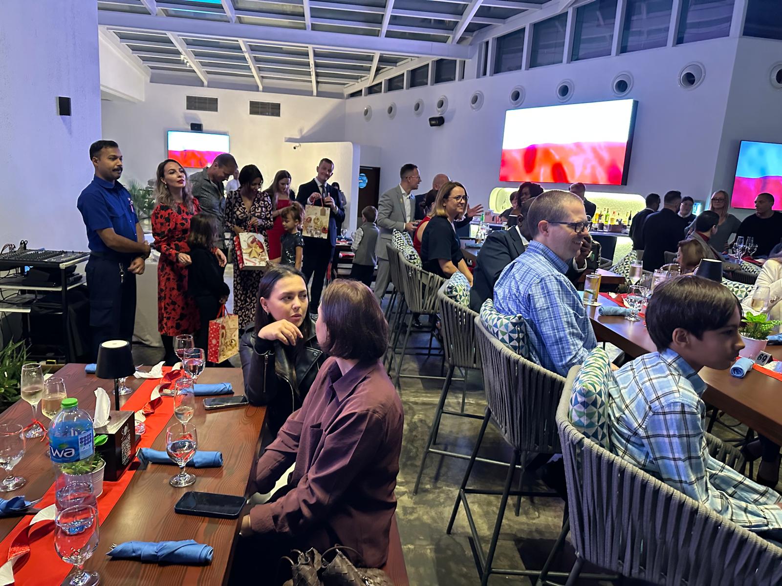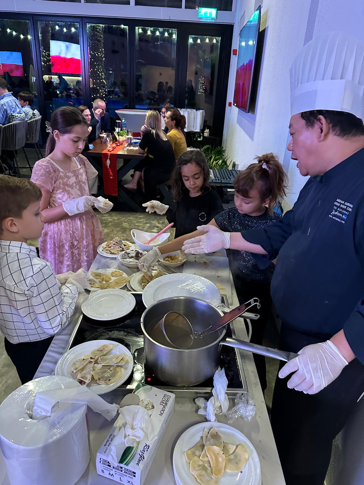 5 grudnia br. w restauracji hotelu w Manamie odbyło się spotkanie świąteczne Polonii oraz gwiazdka dla dzieci w Bahrajnie. W wydarzeniu wzięło udział około 60 osób mieszkających w Bahrajnie. Ambasada reprezentowana była przez CDA Michała Cholewę, Kierownik Referatu Polityczno-Ekonomiczno-Konsularnego i Polonii – Annę Godoj-Ciszkowską oraz Konsul RP – Katarzynę Hopkin. Podczas spotkania odbyła się prezentacja potraw bożonarodzeniowych oraz warsztaty kucharskie dla dzieci – lepienie uszek i pierogów. Warsztaty zakończone były konsumpcją wspólnie przygotowanych tradycyjnych polskich potraw świątecznych. Około 20 najmłodszych dzieci polonijnych otrzymało upominki w postaci gadżetów edukacyjnych z okazji zbliżającej się Gwiazdki. Dziękujemy zgromadzonej Polonii i polskim żołnierzom służącym w Bahrajnie za wyjątkowy wieczór!