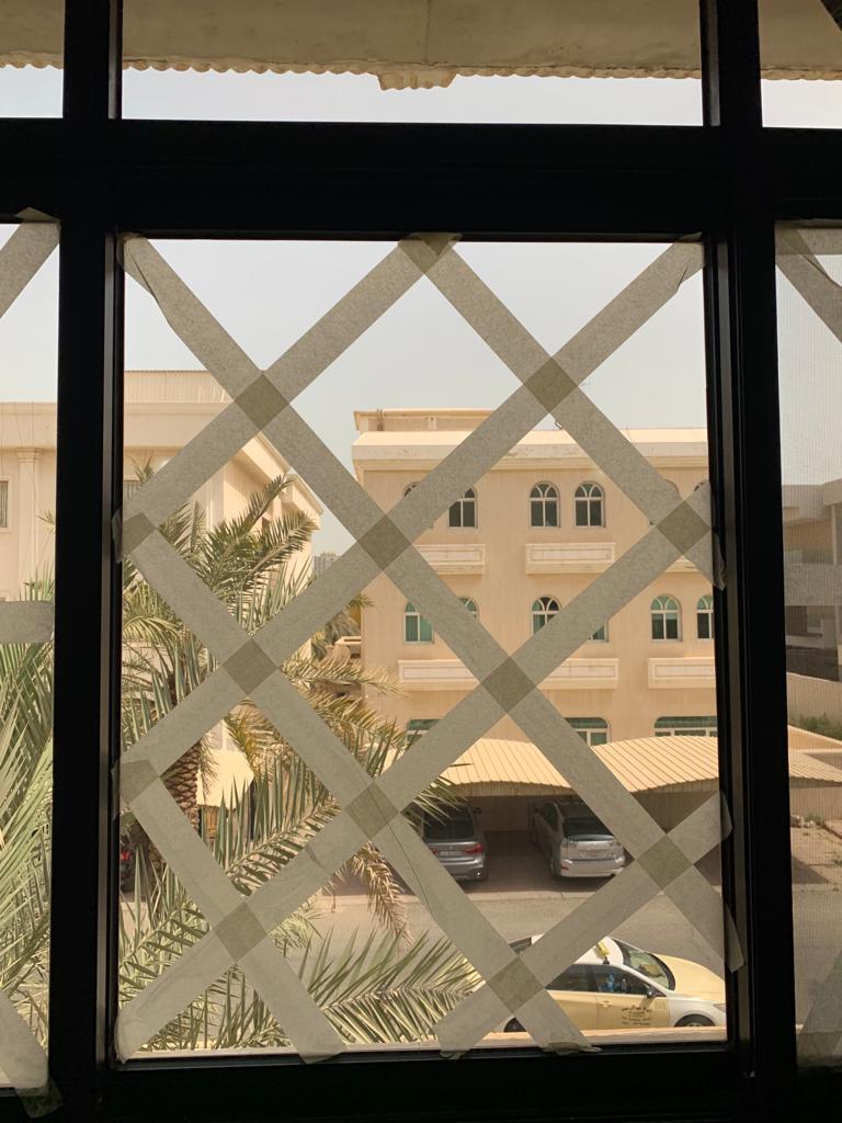 Urodzona w tragicznie zniszczonym przez Rosjan Charkowie autorka instalacji „Teorie ochronne”, która przed wojną schroniła się czasowo w Rumunii, zachęca różne osoby i instytucje, by tego dnia okleiły swoje okna w geometryczne wzory, ale nie przypadkowe. Właśnie tak mieszkańcy Ukrainy, od Lwowa aż po Ługańsk, zabezpieczają szyby przez pękaniem w czasie bombardowań i osypywaniem się szkła w niekontrolowany sposób. Taśma na ich oknach, chroniąca przed falą uderzeniową, stała się wymownym symbolem wojny.
