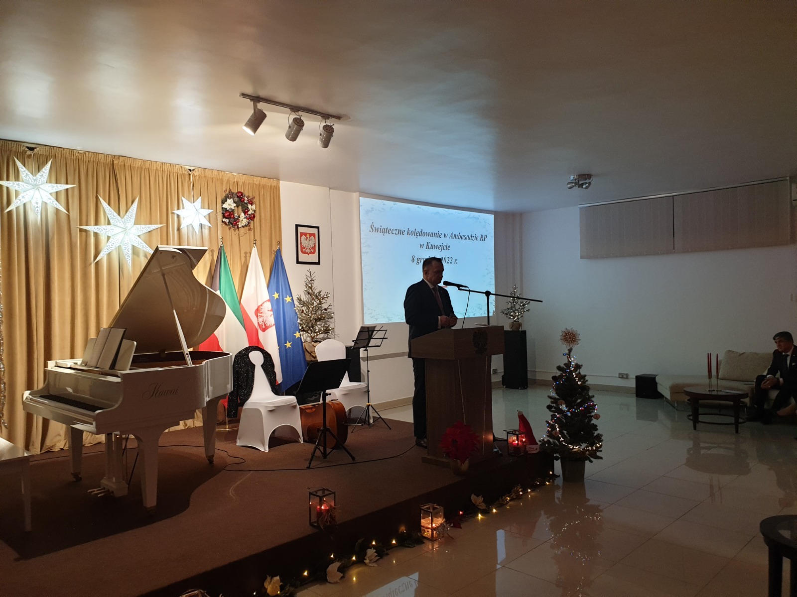 8 grudnia 2022 roku w Ambasadzie RP w Kuwejcie odbyło się spotkanie świąteczne połączone z kolędowaniem. W wydarzeniu wzięli udział Polacy mieszkający w Kuwejcie oraz zaproszeni goście.