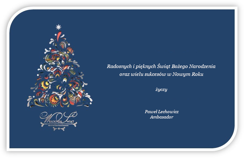 Ambasador RP w Kuwejcie Paweł Lechowicz oraz wszyscy pracownicy Ambasady składają najserdeczniejsze życzenia z okazji Świąt Bożego Narodzenia i Nowego Roku.