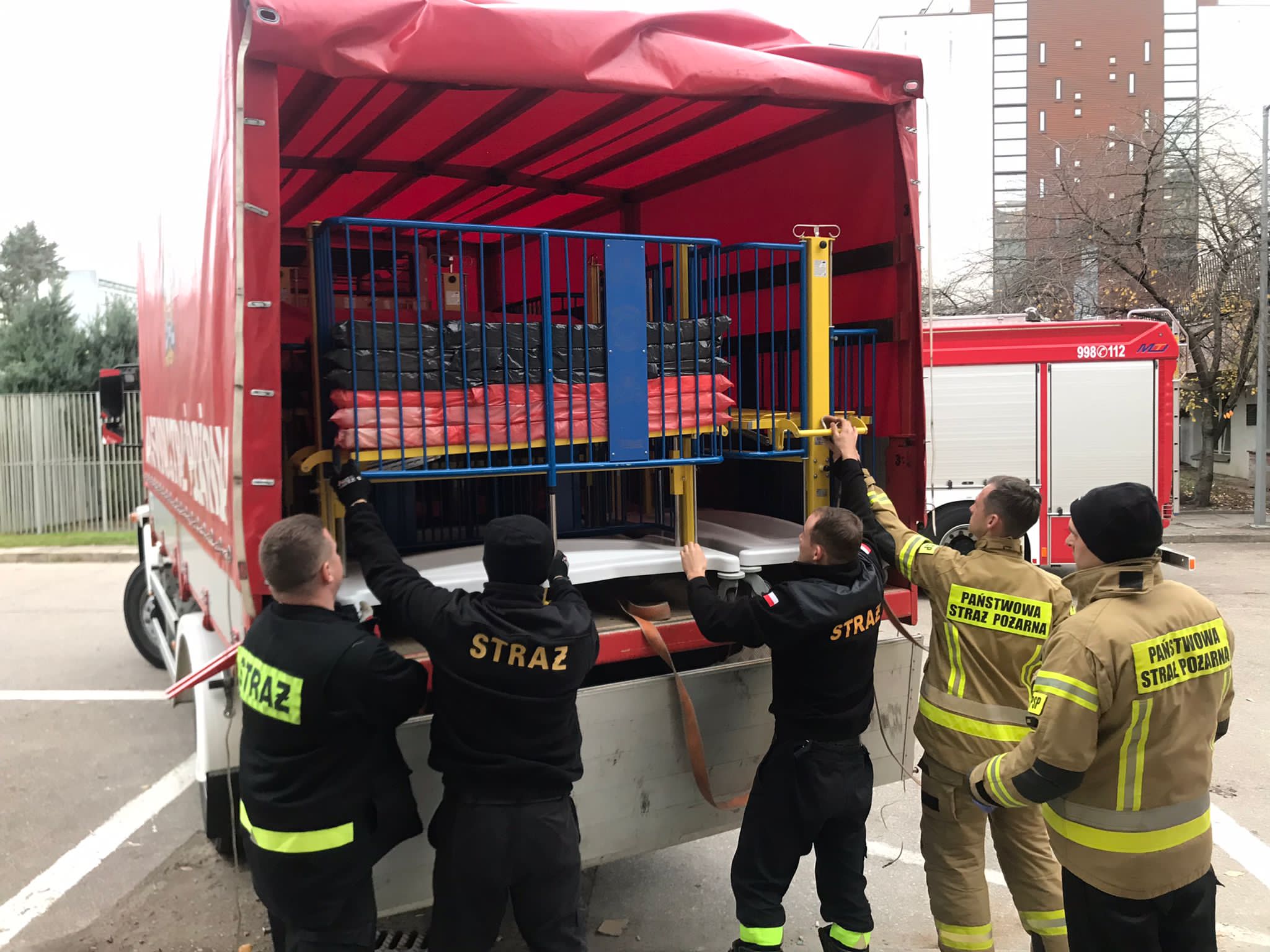 W dniu 28 października 2021 r. do Stanowiska Kierowania Podlaskiego Komendanta Wojewódzkiego Państwowej Straży Pożarnej wpłynęła prośba Dyrektora WPS Podlaskiego Urzędu Wojewódzkiego o pilne przetransportowanie łóżek dziecięcych ze szpitala w Łomży do szpitala UDSK w Białymstoku. Pomoc wynikała z niekorzystnego rozwoju sytuacji związanej z COVID-19 na oddziałach dziecięcych w Białymstoku. W trybie alarmowym zadysponowano zastępy do wykonania zadania wynikającego ze ścisłej współpracy prowadzącej do ograniczania skutków epidemii. Jeszcze tego samego dnia chore dzieci mogły skorzystać ze sprzętu przetransportowanego przez podlaskich strażaków.