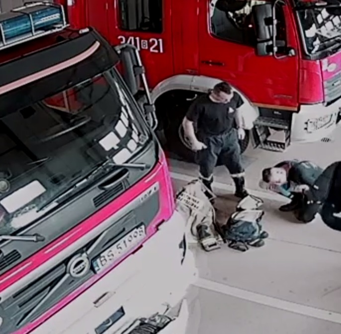 Strażacy ratują niemowlę w suwalskiej Jednostce Ratowniczo - Gaśniczej