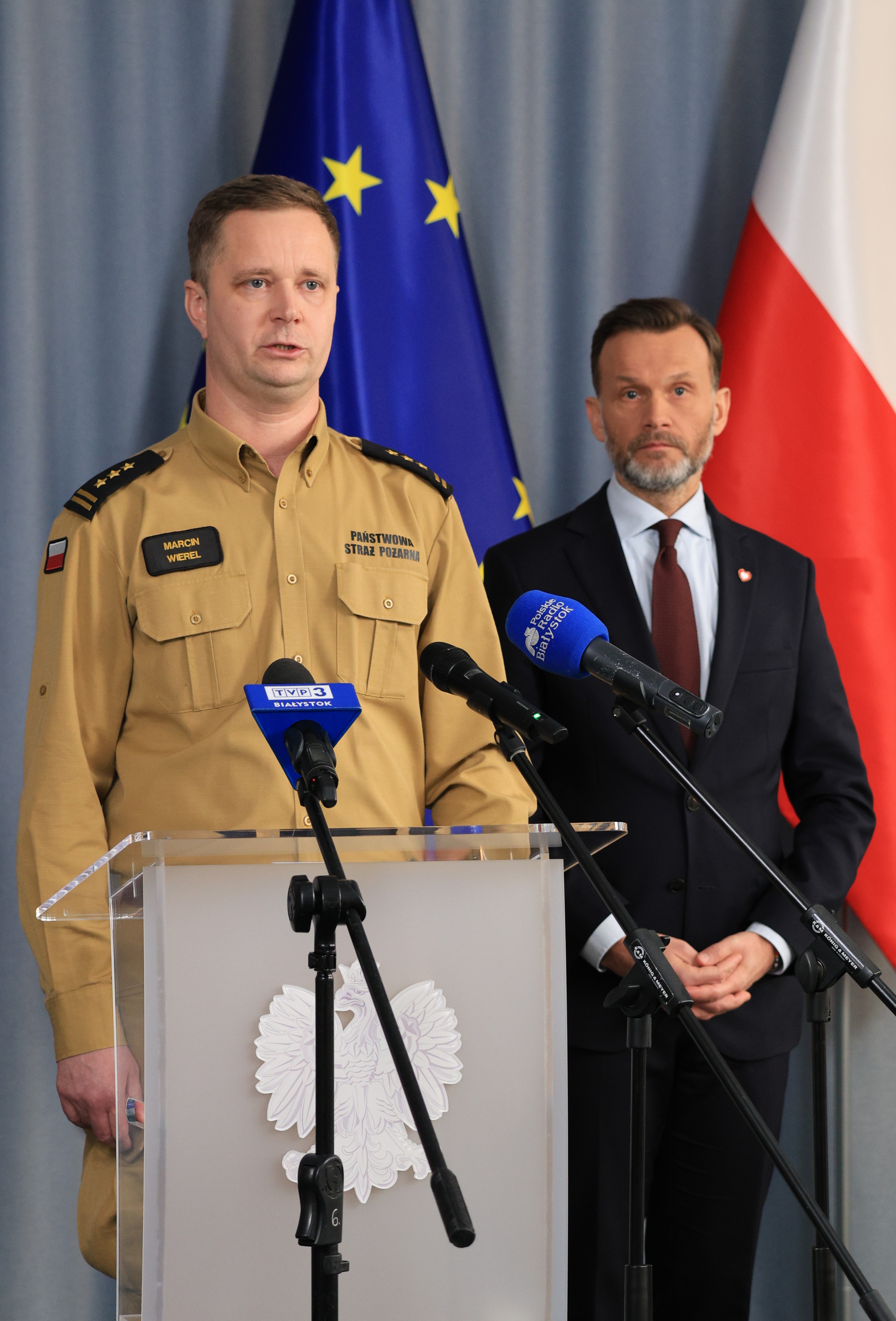 Zastępca podlaskiego komendanta wojewódzkiego Państwowej Straży Pożarnej - st. bryg. Marcin Wierel wziął dziś udział w briefiengu prasowym zorganizowanym w Podlaskim Urzędzie Wojewódzkim, w którym obokWojewody Podlaskiego opowiadał o modernizacji systemu alarmowania na terenie województwa podlaskiego.