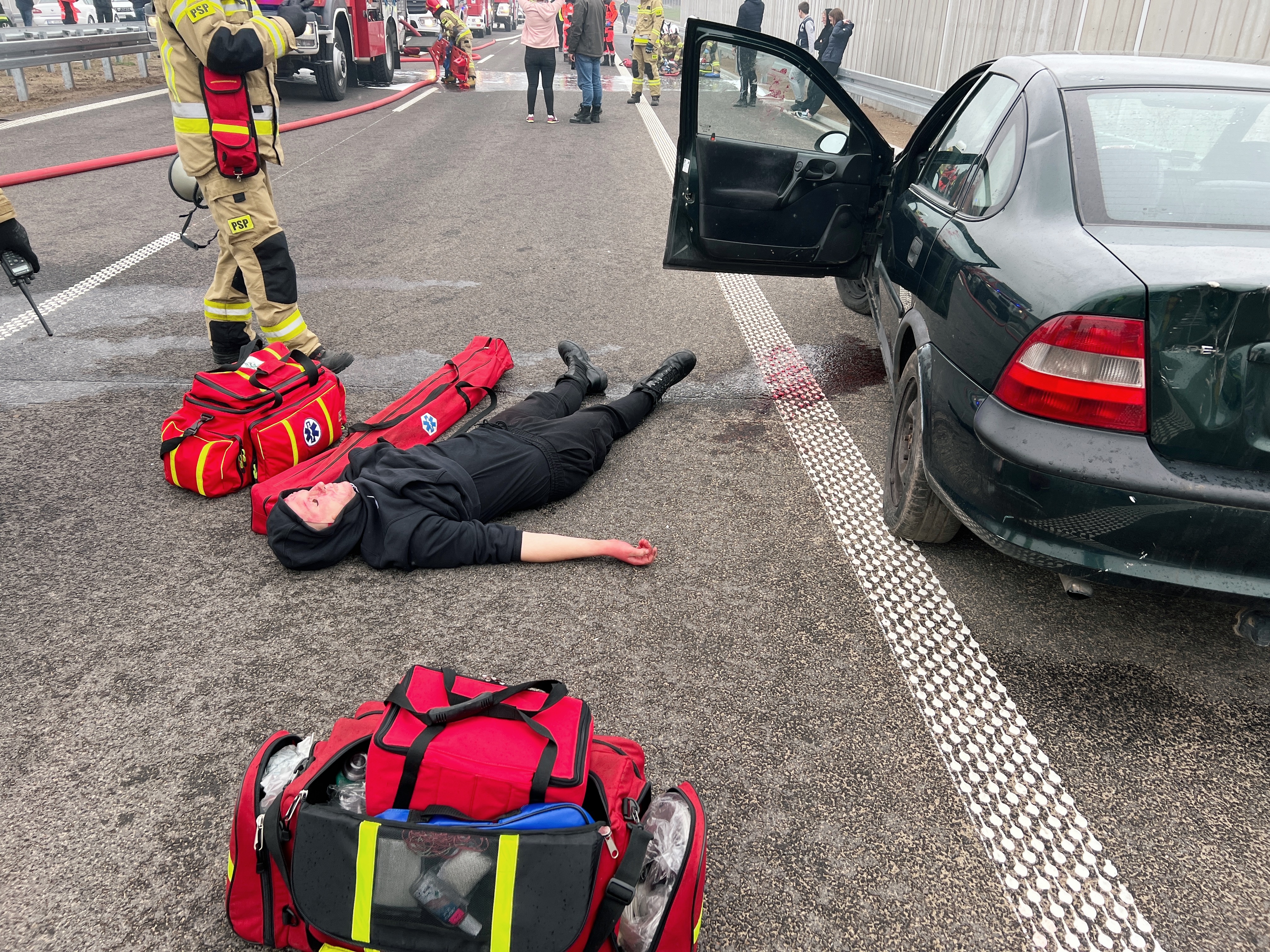 Przybyły na miejsce zdarzenia Kierujący Działaniem Ratowniczym, po przeprowadzeniu rozpoznania przekazuje informacje o dużej ilości poszkodowanych, potwierdza informację o wypadku masowym i prosi o zadysponowanie kolejnych sił i środków.”