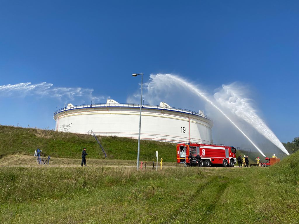 Ponad 32 strażaków oraz10 pojazdów gaśniczych - brało udział w ćwiczeniach na terenie Bazy Magazynowej PERN w Adamowie, które odbyły się 9 września 2021 roku. Symulowana sytuacja zakłada pożar zbiornika z ropą naftową o pojemności 50 tys. m3.