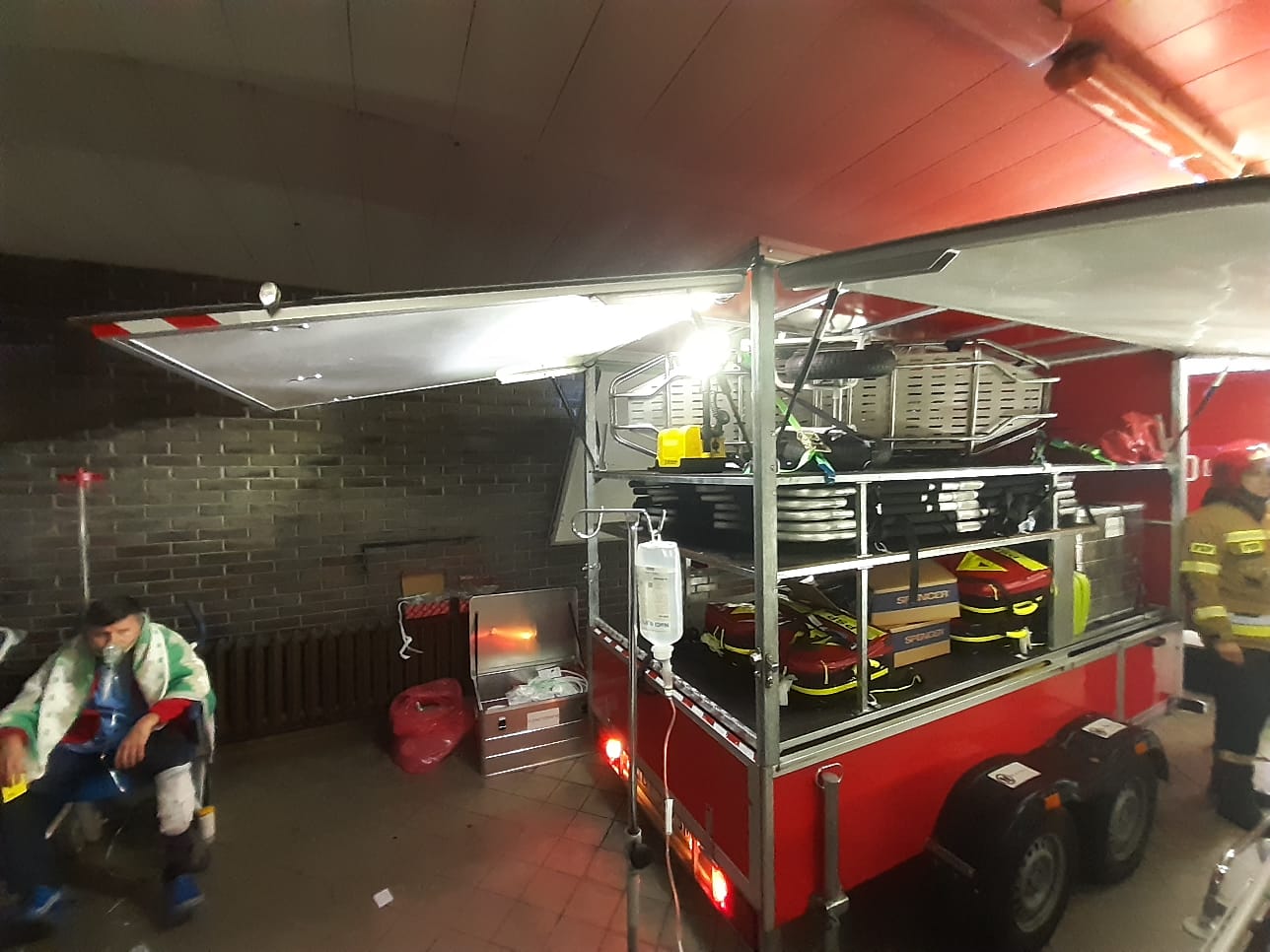 Po dojeździe sił i środków służb ćwiczących przeprowadzono analizę i identyfikację zagrożenia oraz sprawdzono i ustalono taktykę bezpiecznego dla pacjentów i personelu zatrzymania i unieszkodliwienia agresora. Po dokonanym zatrzymaniu agresora przez Policję dokonano rozpoznania substancji przyniesionej przez agresora w słoikach (w środku znajdował się alkohol). Następnie jako clou ćwiczenia przeprowadzono sprawną ewakuację pacjentów leżących poza strefę niebezpieczną aby personel medyczny Szpitala MSWiA i będących na miejscu zdarzenia strażaków – ratowników medycznych mógł wdrożyć zaawansowane czynności ratujące życie i zdrowie.