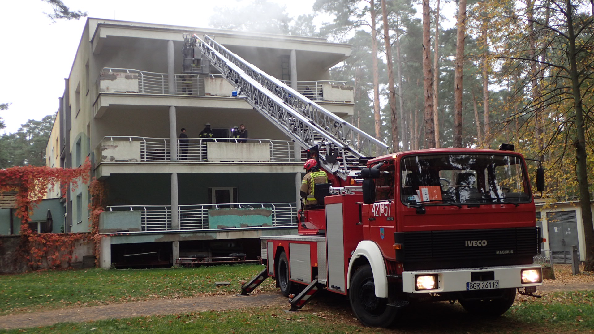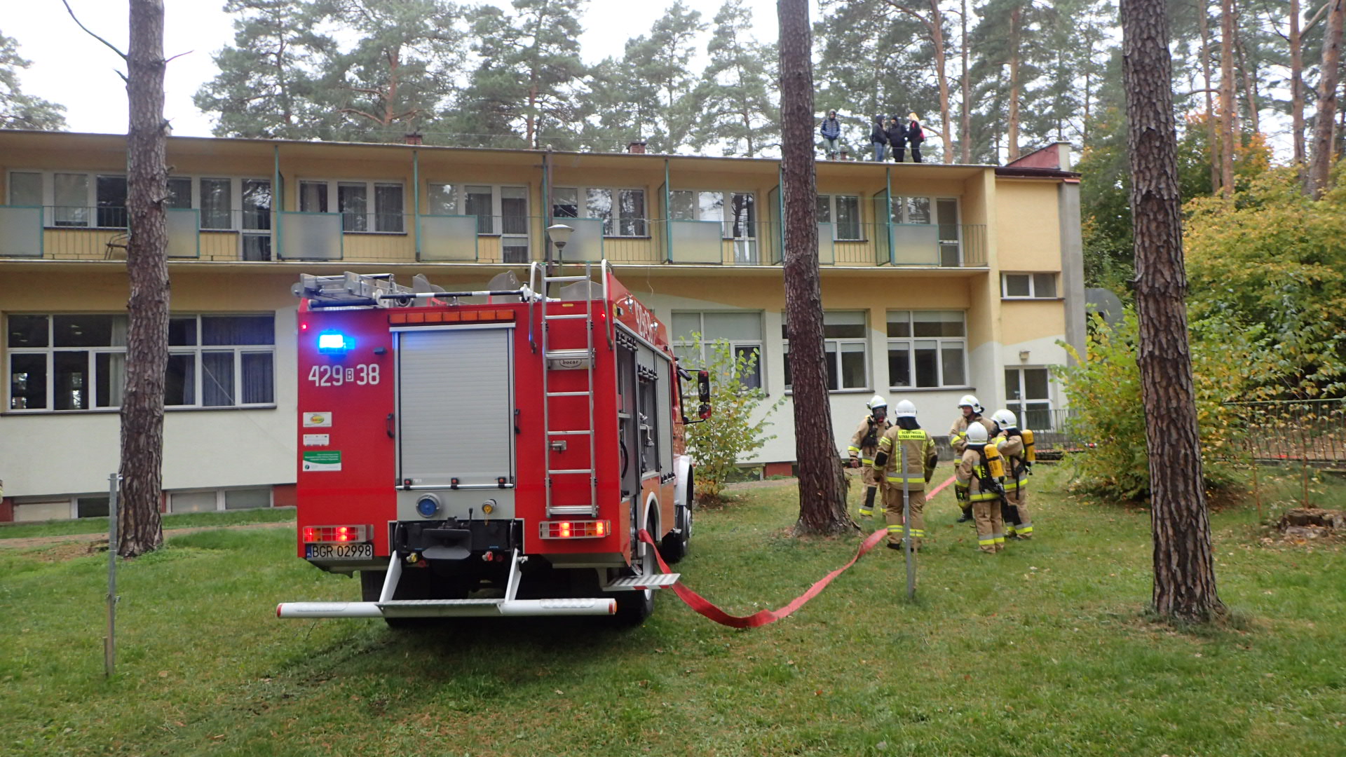 W obliczu zagrożenia kilka kolejnych osób wybiegło na balkony znajdujące się na I oraz II piętrze, a część weszła na dach budynku przez właz. Aby bezpiecznie ewakuować ludzi na ziemię konieczne było użycie autodrabiny mechanicznej. Pożar wewnątrz budynku ugasili strażacy z okolicznych jednostek Ochotniczych Straży Pożarnych.