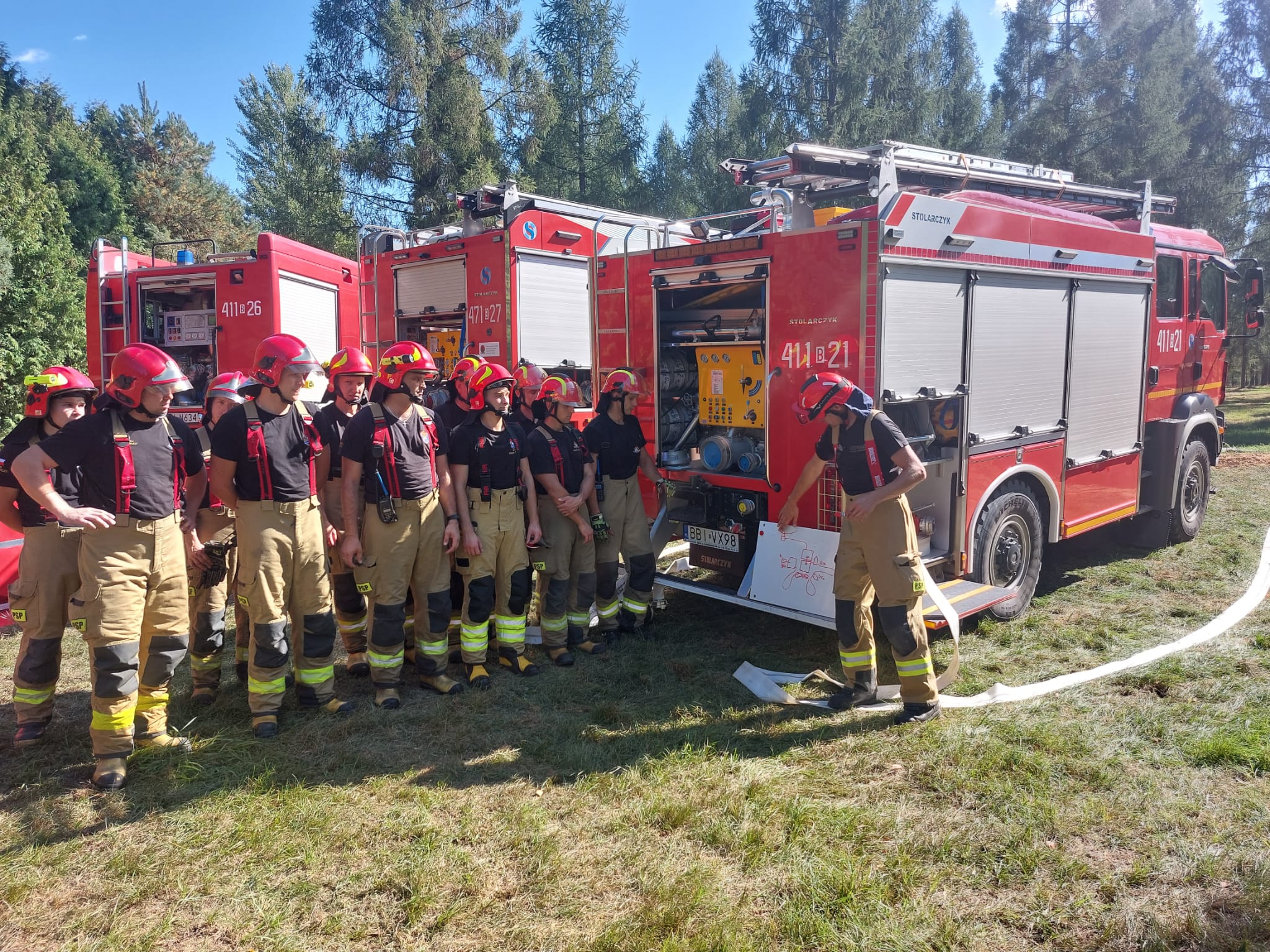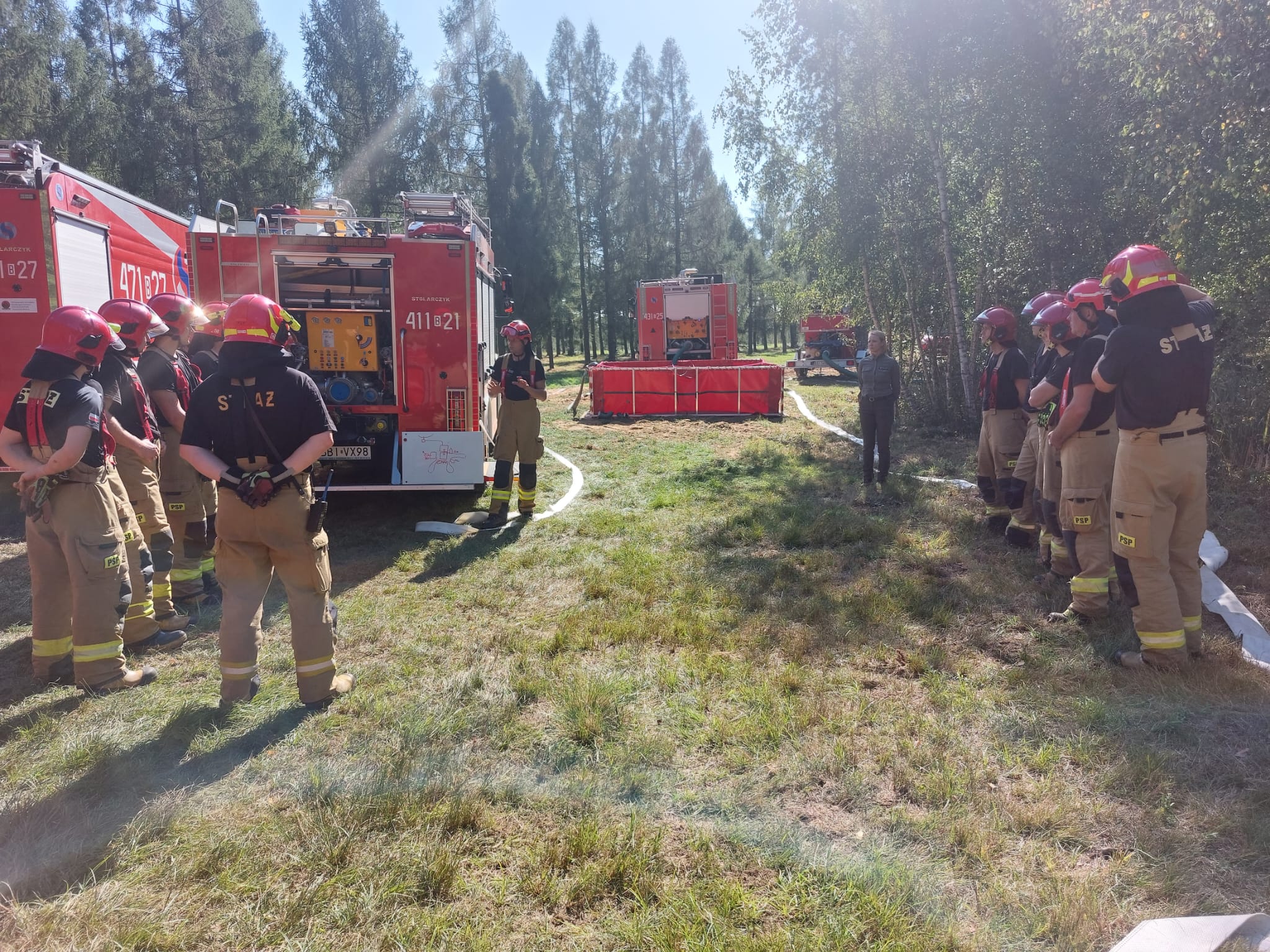 W dniach 19-20 września 2023 r. na terenie kompleksu szkółki leśnej Grabowiec (powiat bielski) odbyły się warsztaty z zakresu realizacji zaopatrzenia wodnego sił i środków jednostek ochrony przeciwpożarowej włączonych w struktury Wojewódzkiego Odwodu Operacyjnego. Zajęcia teoretyczne oraz praktyczne przeprowadzili funkcjonariusze Komendy Powiatowej PSP w Gnieźnie, uczestnicy trzech zagranicznych misji ratowniczych w ramach modułu GFFFV Poland.
