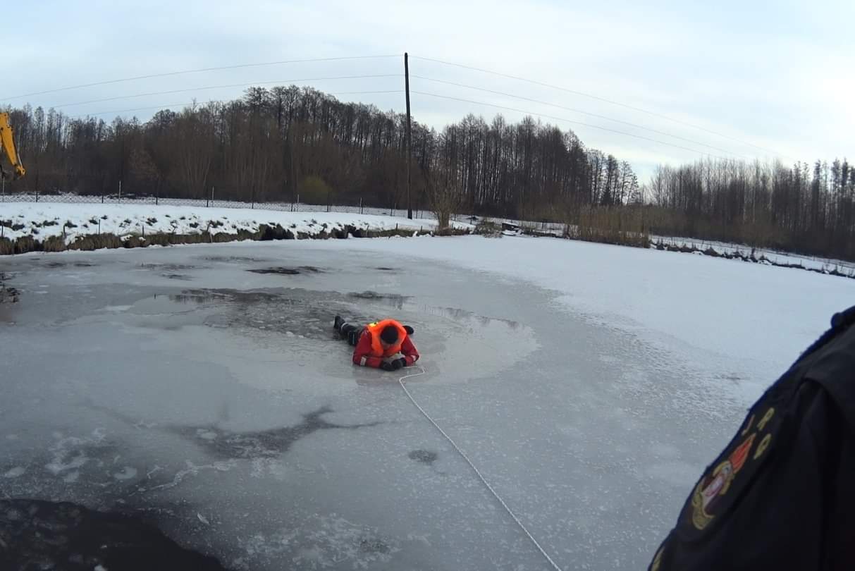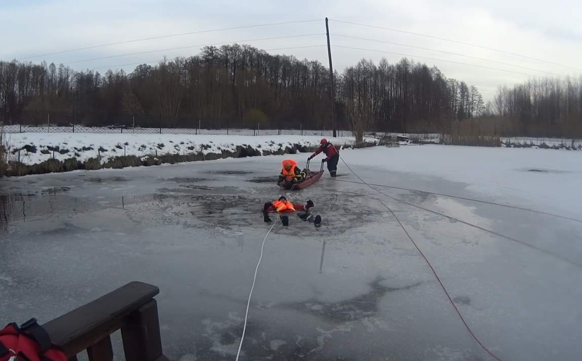 Ćwiczenia z zakresu ratownictwa lodowego, powiat kolneński.