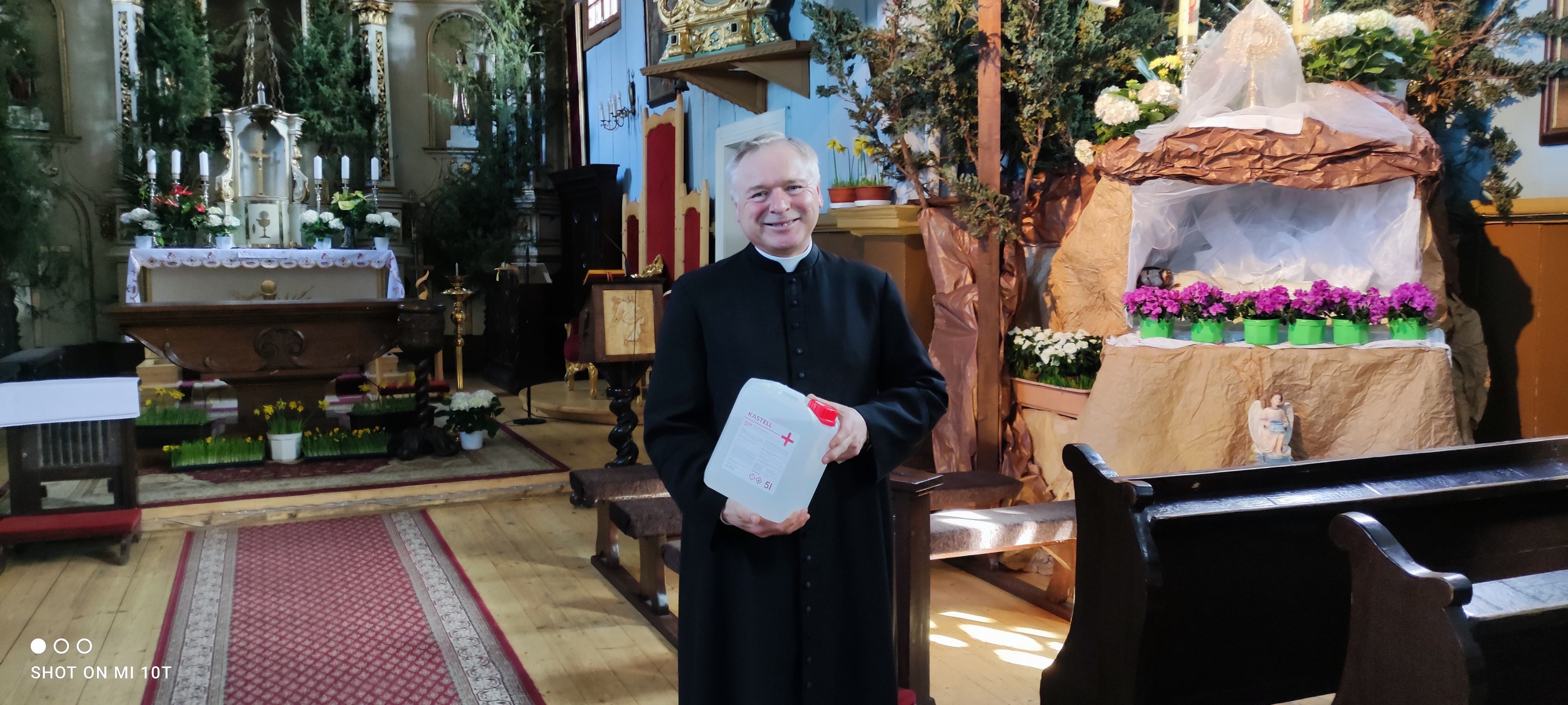 Dystrybucja płynów dezynfekcyjnych do parafii na terenie powiatu monieckiego