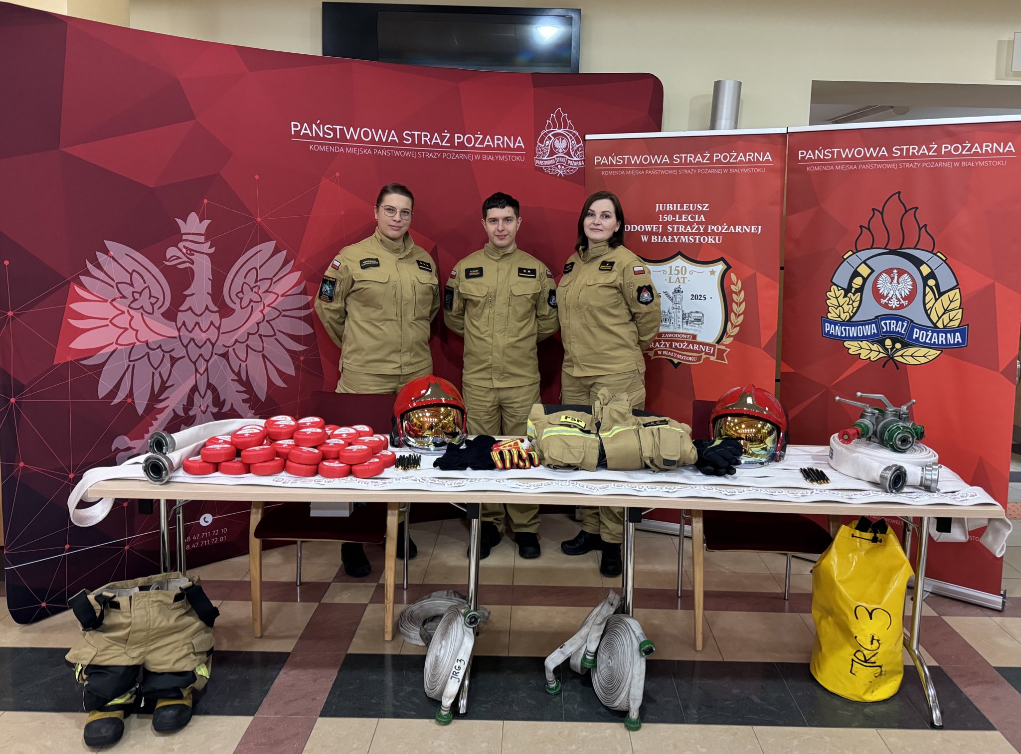 W holu urzędu została zarezentowana również oferta edukacyjna przedstawiona przez funkcjonariuszy poszczególnych służb. O Państowej straży Pożarnej, a także o pracy strażaków opowiadali funkcjonariusze Komendy Miejskiej PSP w Białymstoku.