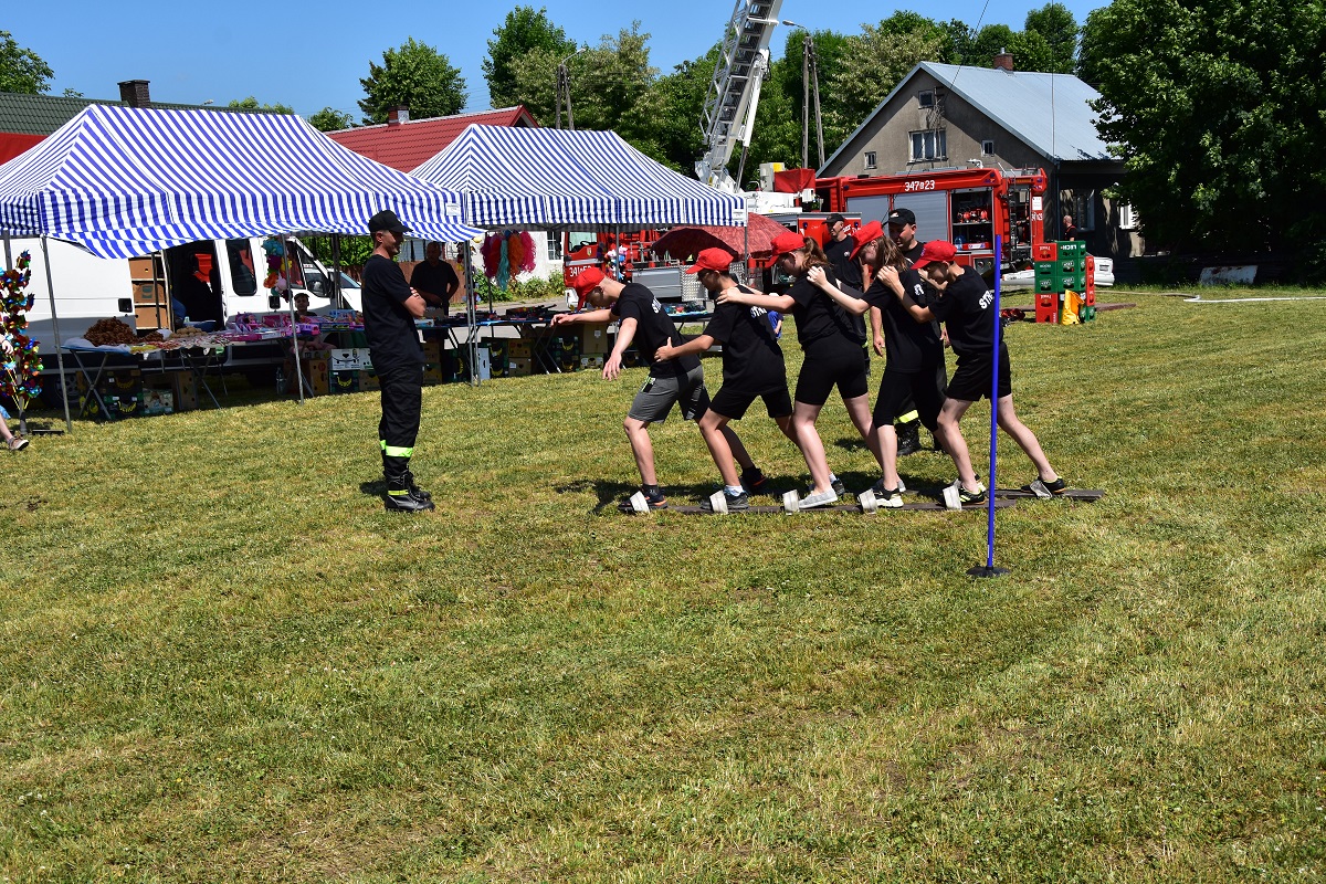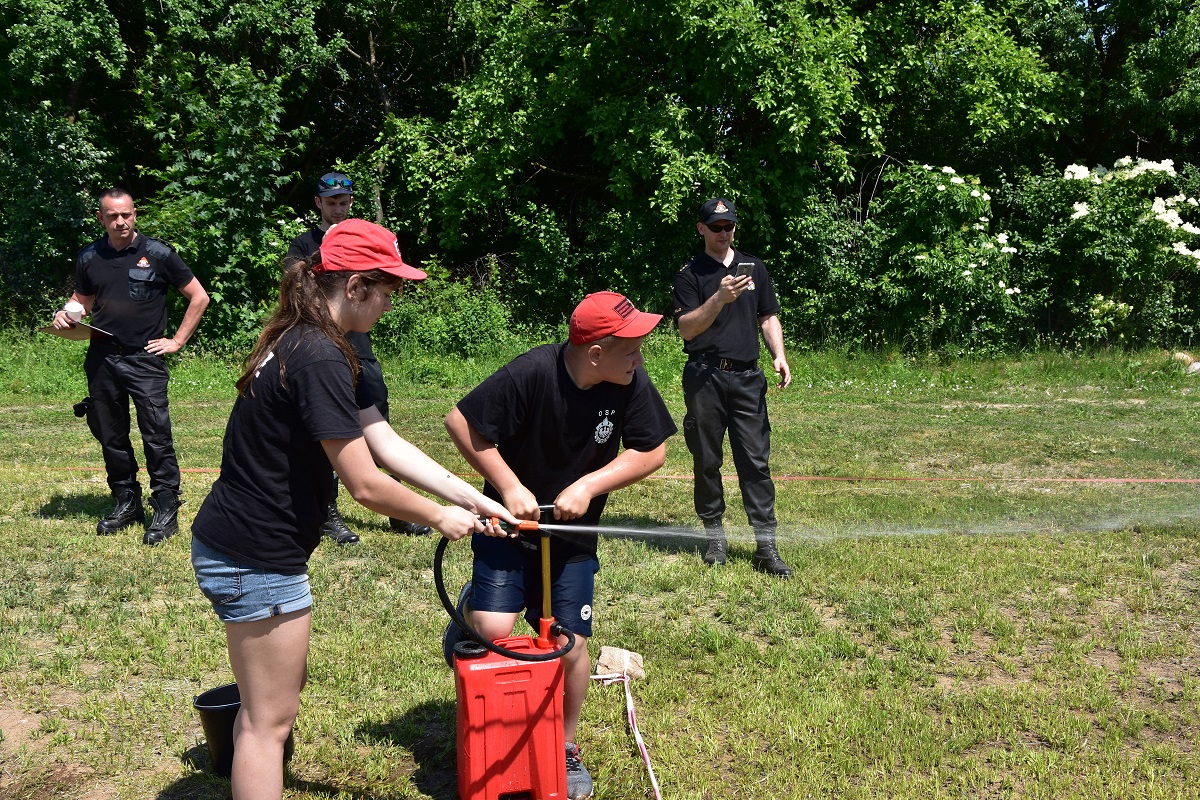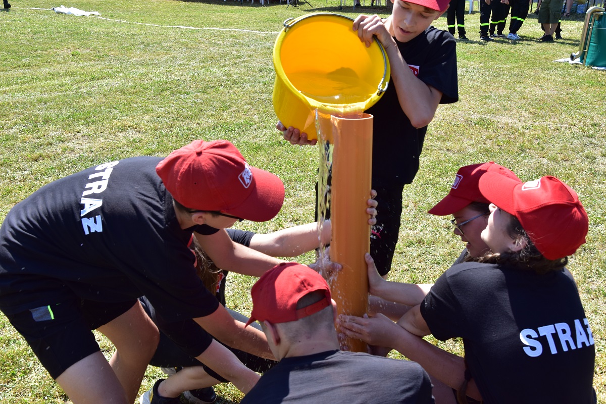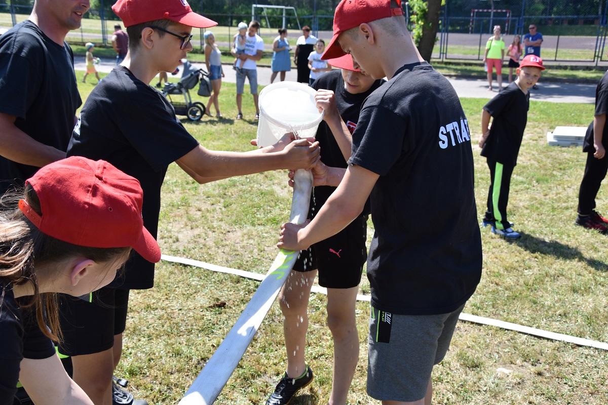 5 drużyn z Ochotniczych Straży Pożarnych. Drużyny liczyły od 6 do 8 osób, które rywalizowały wzajemnie ze sobą. Konkurencje obejmowało 8 stacji, tj.: most na rzece, strażackie narty, awaria rurociągu, krzywa wieża, worki, aby do celu, akcja gaśnicza oraz trójbój. Zawody miały na celu popularyzację wśród młodzieży zagadnień z ochrony przeciwpożarowej. Ponadto młodzież podczas zmagań na poszczególnych stanowiskach uczyła się współpracy zespołowej. W ogólnej klasyfikacji wyniki przedstawiały się następująco:
