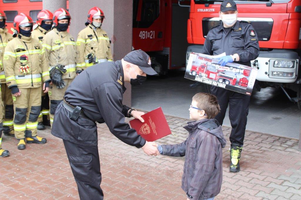 KP PSP Sokółka - podziękowania dla młodego bohatera