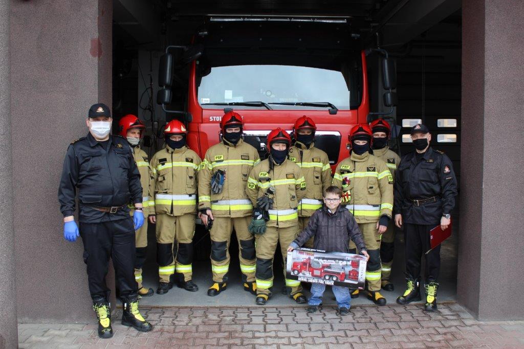 Strażacy Komendy Powiatowej PSP w Sokółce postanowili docenić odważną postawę młodego bohatera. W tym celu zorganizowali zbiórkę, dzięki której zakupili chłopcu pamiątkową niespodziankę.