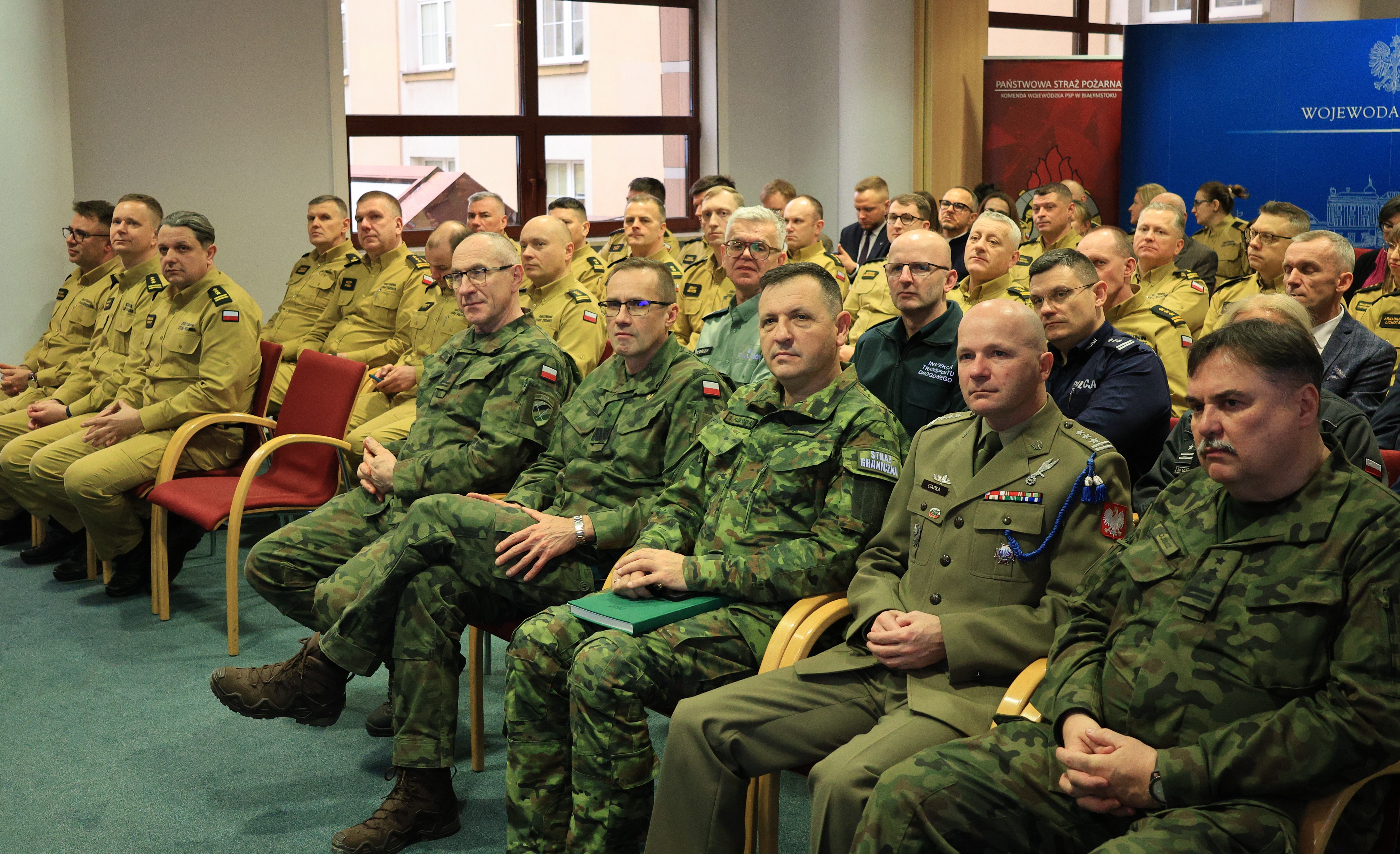 We wtorek 11 lutego 2025 roku w Sali Kolumnowej Podlaskiego Urzędu Wojewódzkiego odbyła się narada roczna kadry kierowniczej Państwowej Straży Pożarnej województwa podlaskiego.