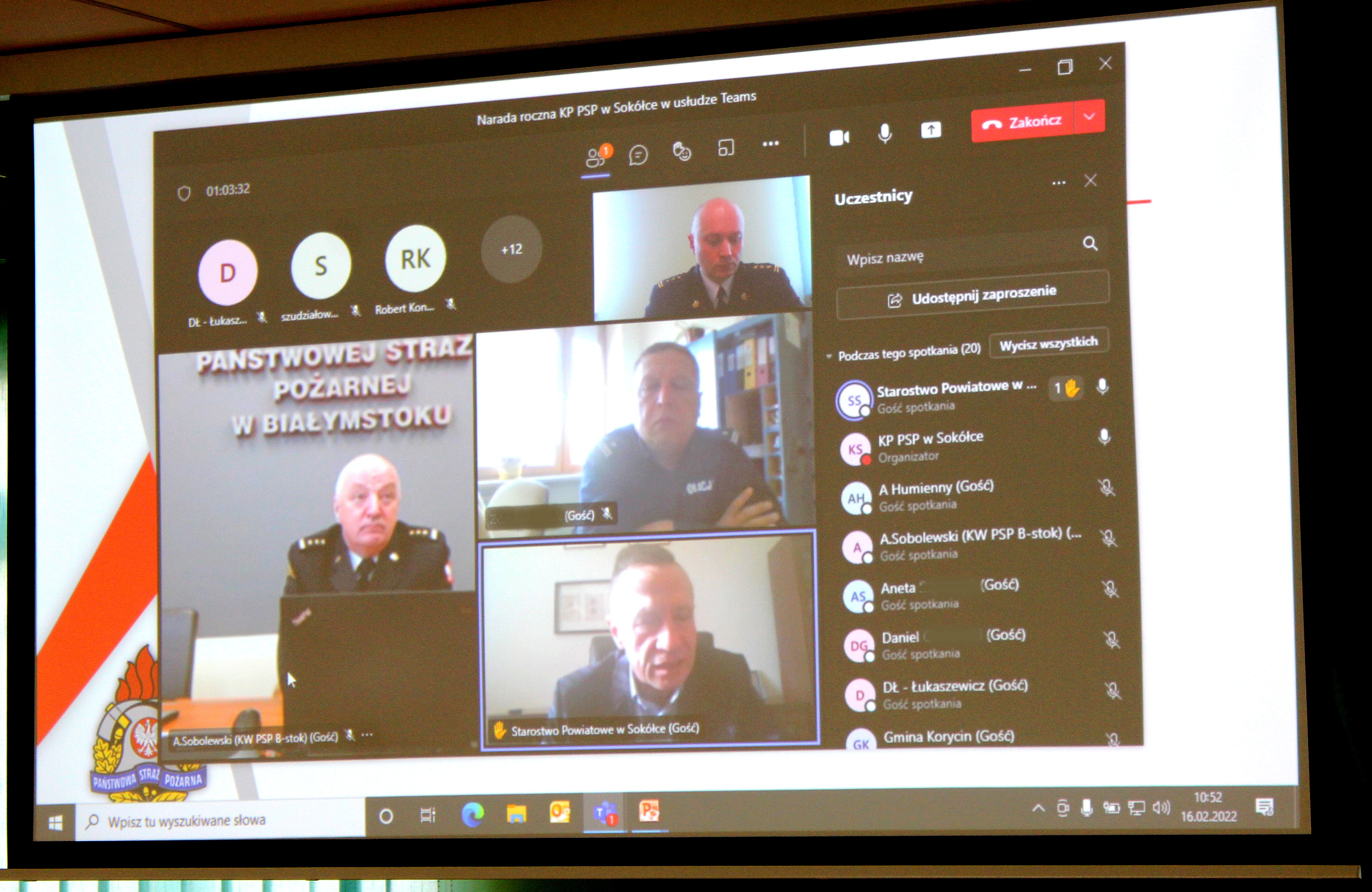 16 lutego 2022 roku o godzinie 10.00 odbyła się narada roczna podsumowująca działalności Komendy Powiatowe PSP w Sokółce i jednostek ochrony przeciwpożarowej powiatu sokólskiego za 2021 rok.