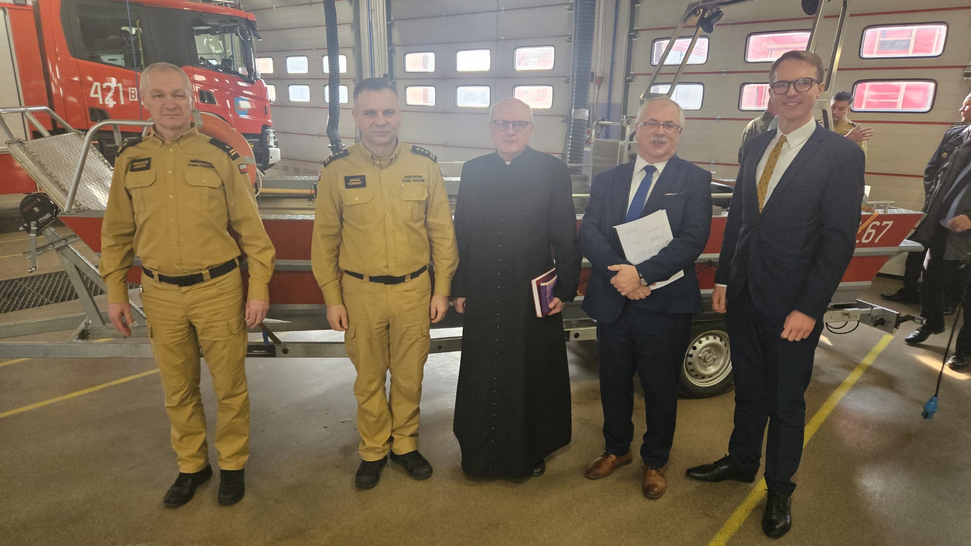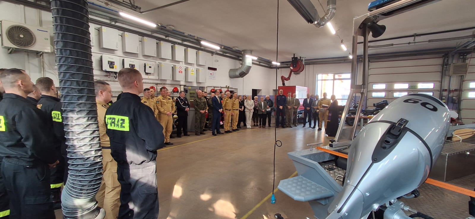 W drugiej części spotkania uczestnicy udali się do garażu Jednostki Ratowniczo-Gaśniczej w Grajewie, gdzie Kapelan Powiatowy Strażaków ks. Antoni Wróblewski dokonał poświęcenia nowej łodzi oraz pozyskanego w ubiegłym roku sprzętu.