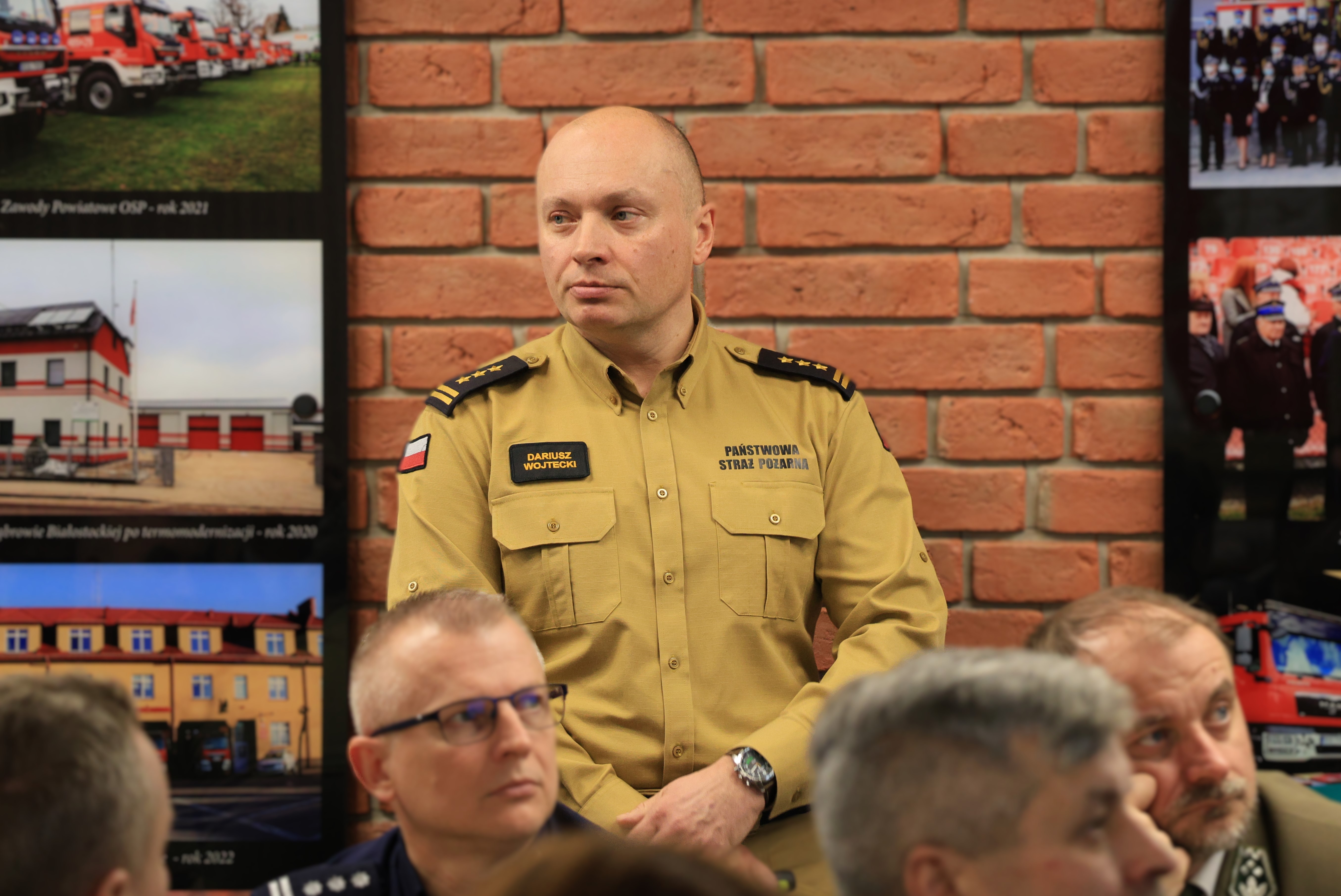 Kolejno komendant powiatowy PSP przedstawił informację podsumowującą działalność strażaków powiatu sokólskiego oraz funkcjonowanie ochrony przeciwpożarowej, w której omówił wszystkie zadania realizowane przez PSP i OSP w 2024 roku.