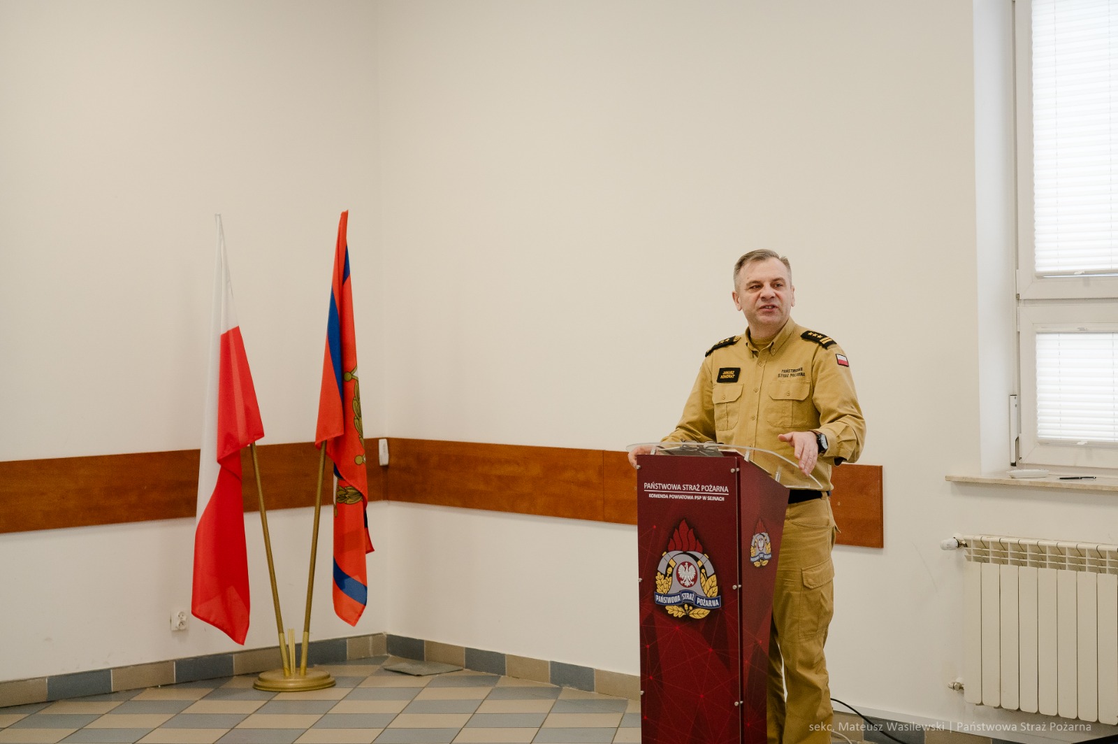 Następnie podlaski komendant wojewódzki Państwowej Straży Pożarnej st. bryg. Janusz Kondrat podsumował funkcjonowanie ochrony przeciwpożarowej w województwie podlaskim oraz przedstawił zadania do realizacji w roku bieżącym.