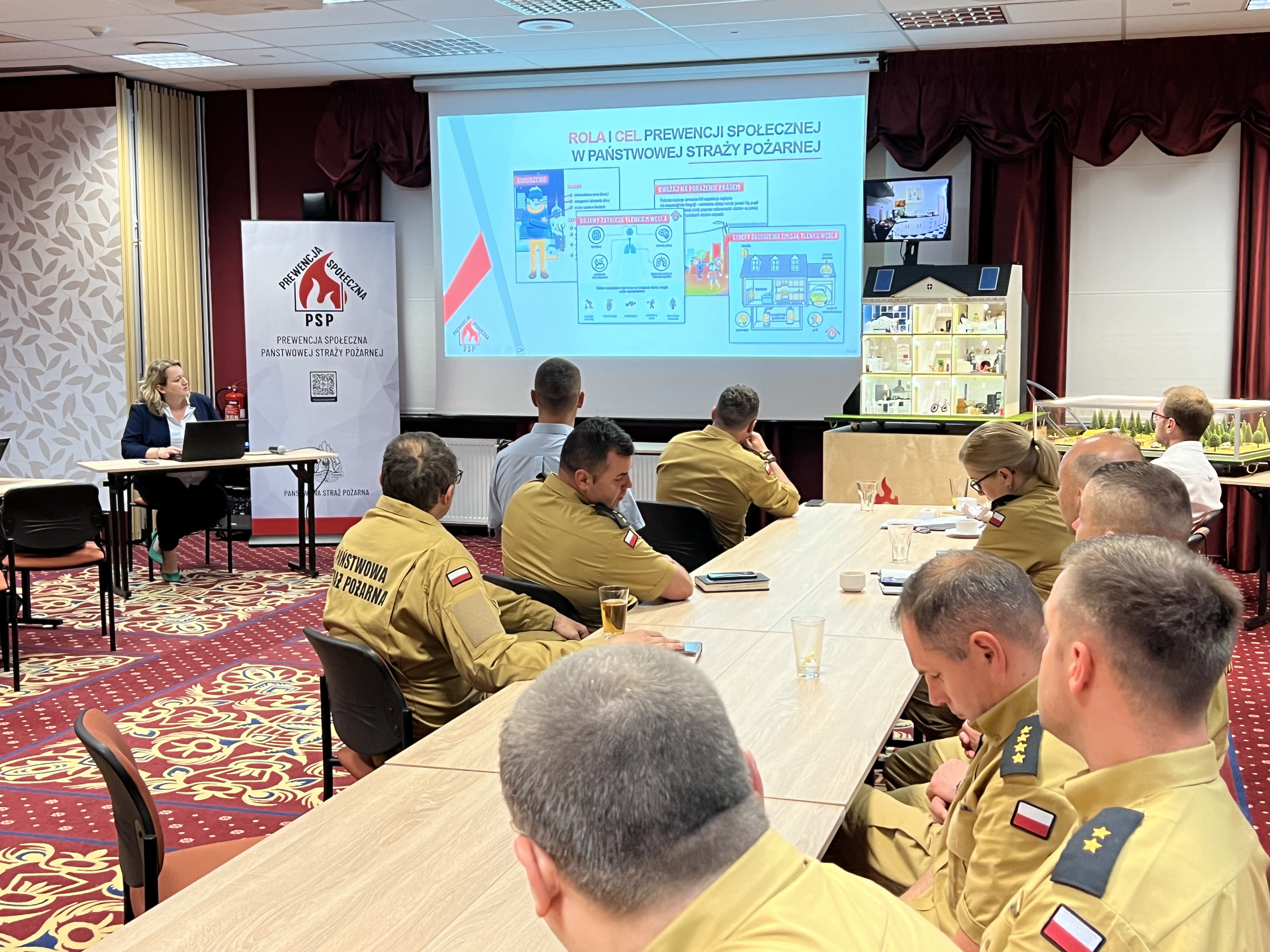 Następny dzień szkoleniowy poświęcony był w całości tematyce prewencji społecznej. W roli prelegentów Naczelnik Wydziału Prewencji Społecznej KG PSP Marta Wawiórko i Zastępca Naczelnika Wydziału Prewencji Społecznej KG PSP mł. bryg. Teresa Tiszbierek przedstawiły następujące zagadnienia: