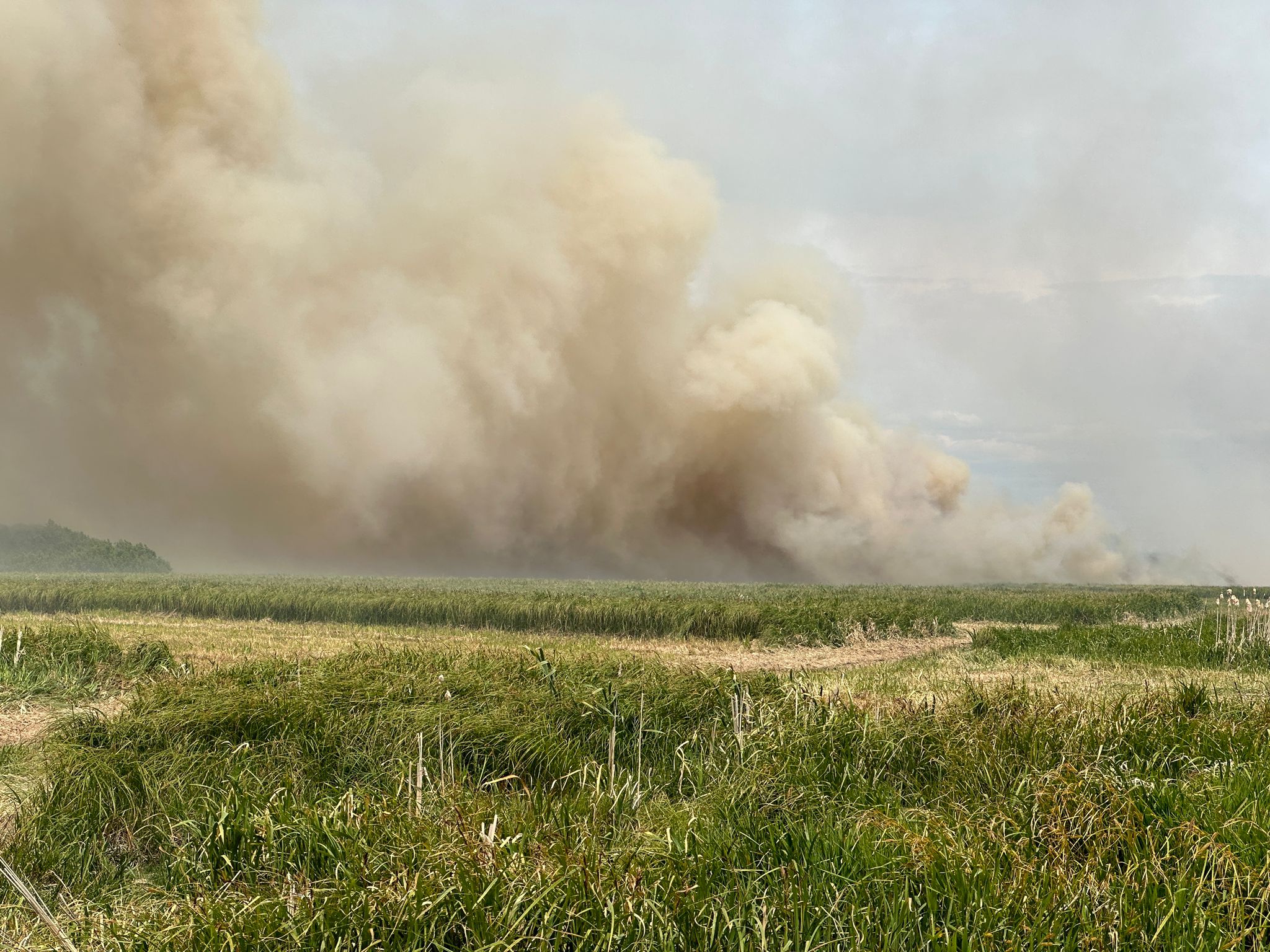 13 ha łąk przylegających bezpośrednio do granicy Biebrzańskiego Parku Narodowego, paliło się na terenie powiatu sokólskiego. Pożar stanowił realne zagrożenie Biebrzańskim torfowiskom.