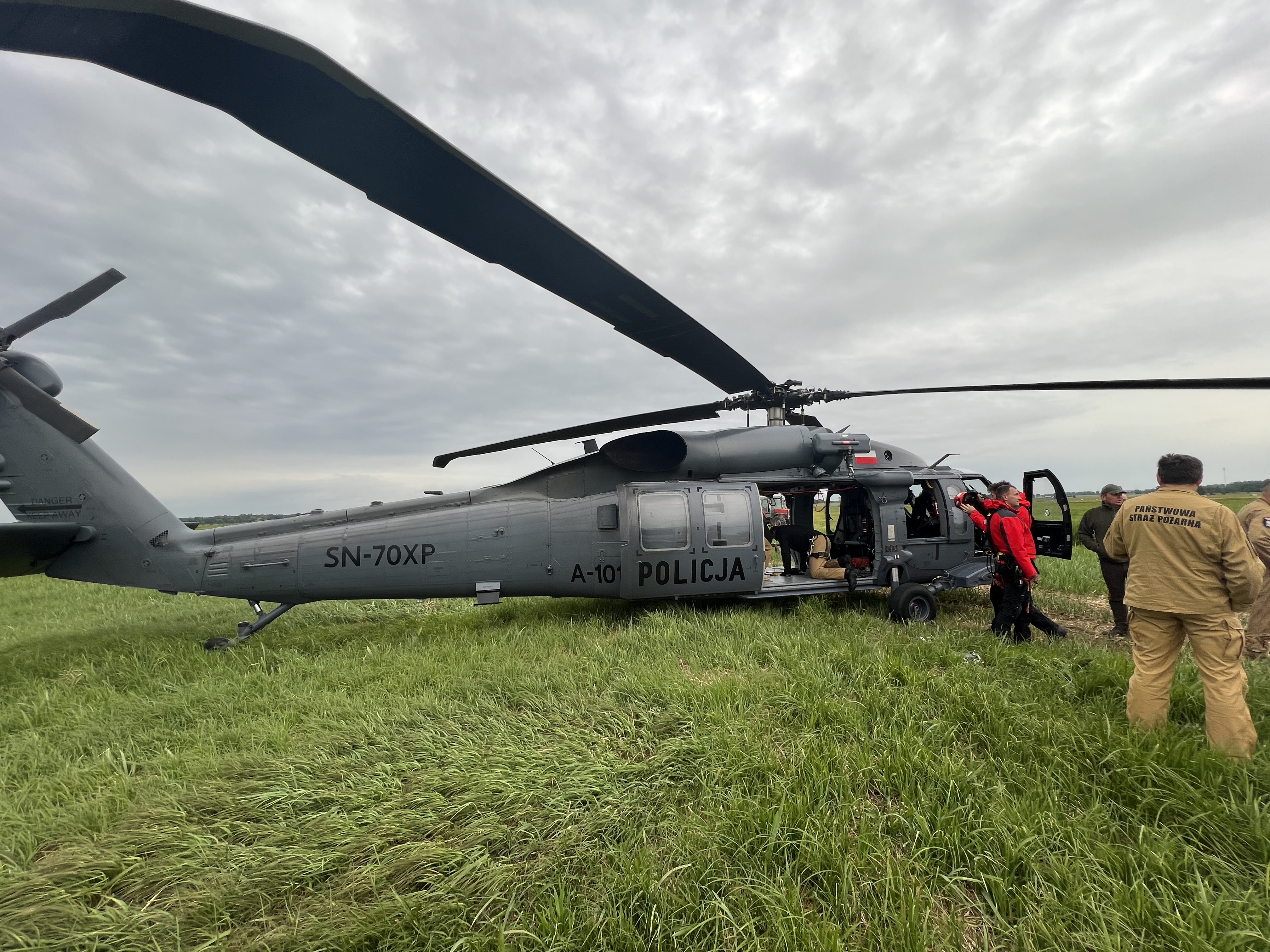 Do wsparcia działań (w ramach obustronnych porozumień) uruchomiono samoloty gaśnicze Lasów Państwowych „Dromader” oraz śmigłowiec Policyjny Black Hawk z podwieszanym zbiornikiem na wodę typu Bambi Bucket. Działania z powietrza umożliwiły podjęcie gaszenia w miejscach, w których nie można było podjąć gaszenia z poziomu gruntu.