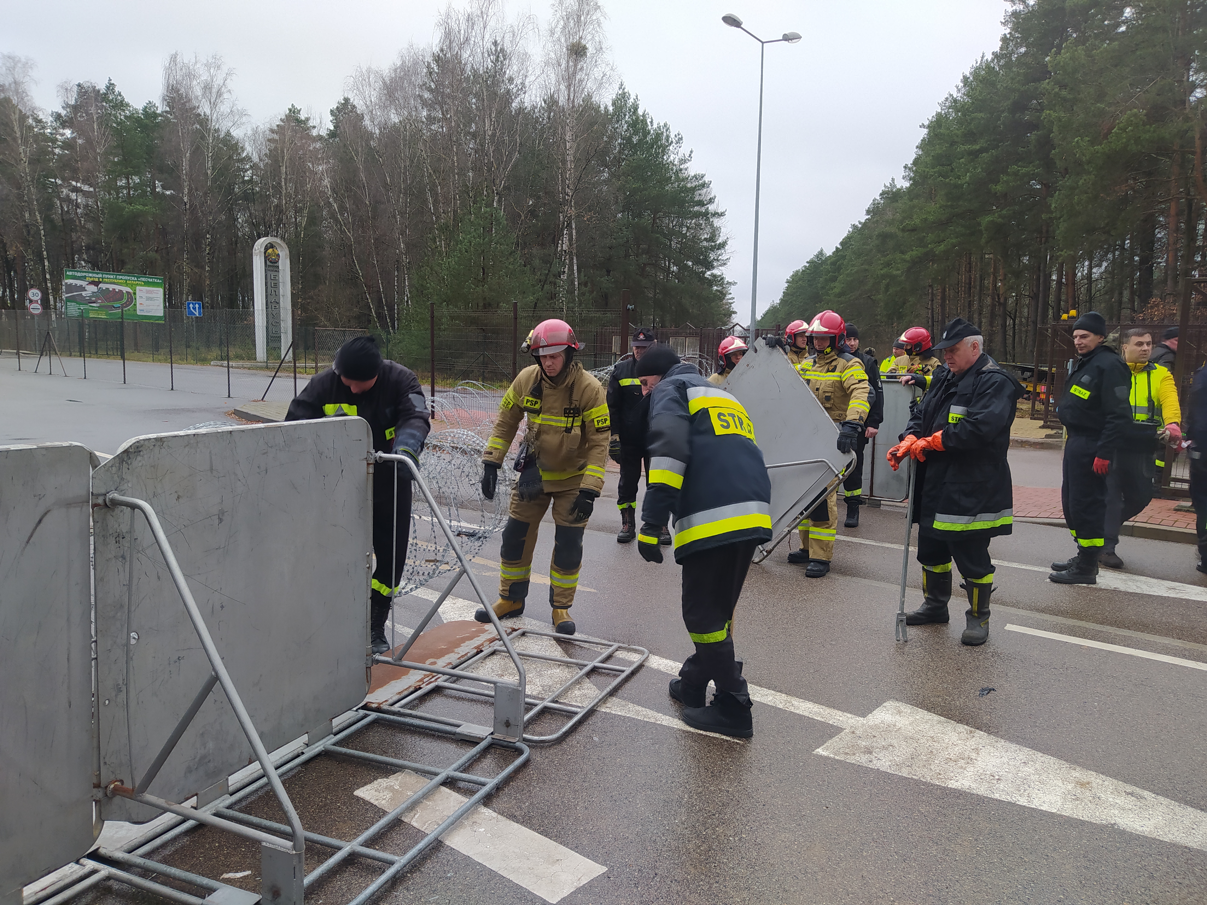W piątek 19 listopada strażacy z terenu powiatu hajnowskiego wspierając służby działające na granicy państwa pomogli ustawiać barierki przeciwtłumowe na przejściach granicznych w Połowcach oraz w Białowieży. Ponadto na przejściu w Połowcach w celu zapewnienia właściwego stanu przejezdności bocznych dróg dojazdowych dokonano wykarczowania małych drzew i krzewów. W działaniach na przejściu granicznym w Połowcach uczestniczyło łącznie osiem zastępów straży pożarnej, m.in.: Jednostka Ratowniczo-Gaśnicza z Hajnówki, Posterunku Jednostki Ratowniczo-Gaśniczej w Czeremsze, Ochotnicze Straże Pożarne: z Kleszczel, Czeremchy, Czeremchy Wsi, Dobrowody. Natomiast na przejście graniczne w Białowieży zadysponowano sześć zastępów straży pożarnej, m.in.: Jednostkę Ratowniczo-Gaśniczą z Hajnówki, Ochotnicze Straże Pożarne: z Białowieży, Mochnatego, Nowokornina oraz Orzeszkowa. Działania na przejściach granicznych osobiście nadzorował Zastępca Komendanta Powiatowego PSP w Hajnówce.