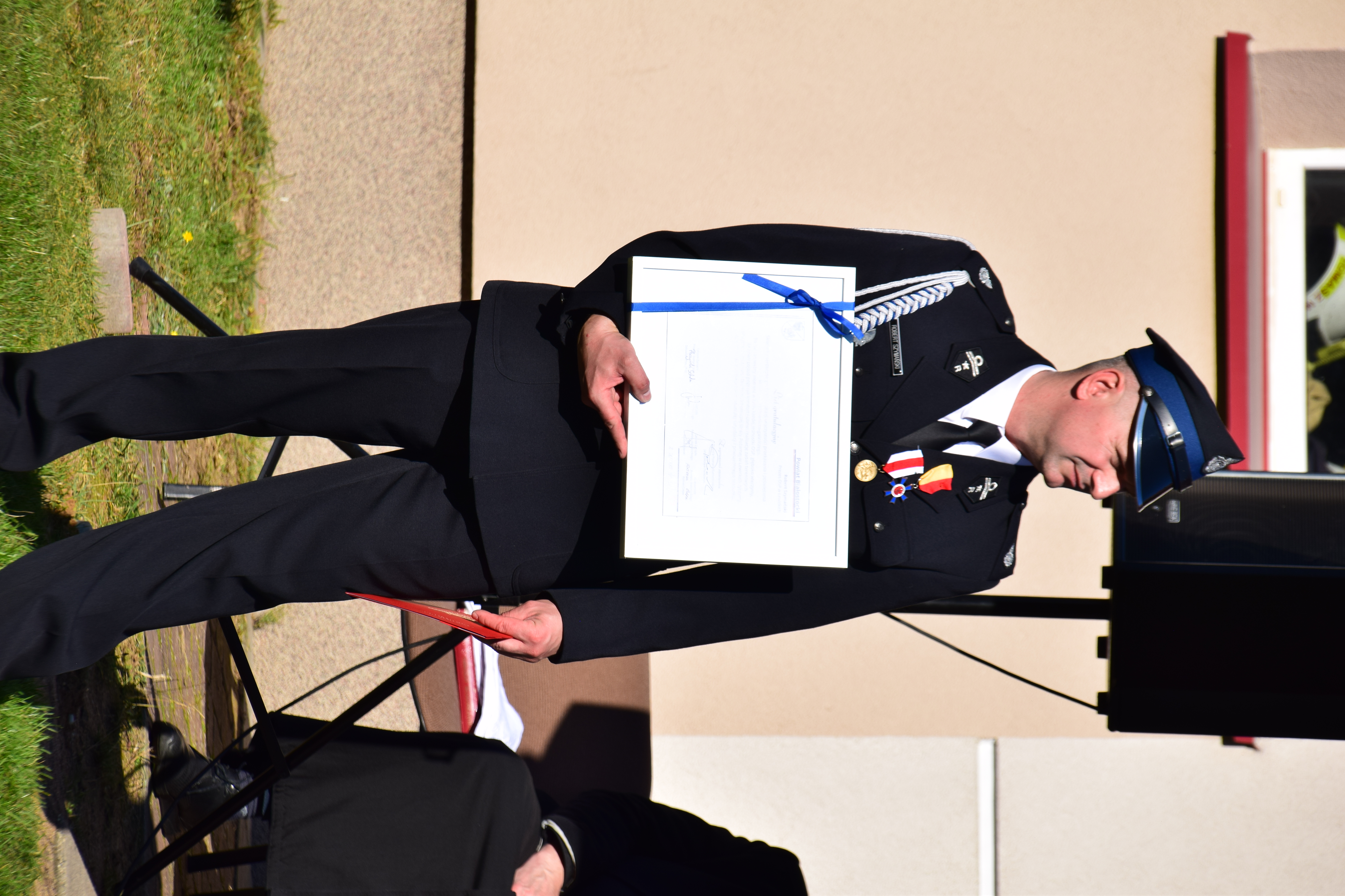 W trakcie uroczystości dokonano poświęcenia nowego pojazdu oraz zostały wręczone odznaczenia i medale.