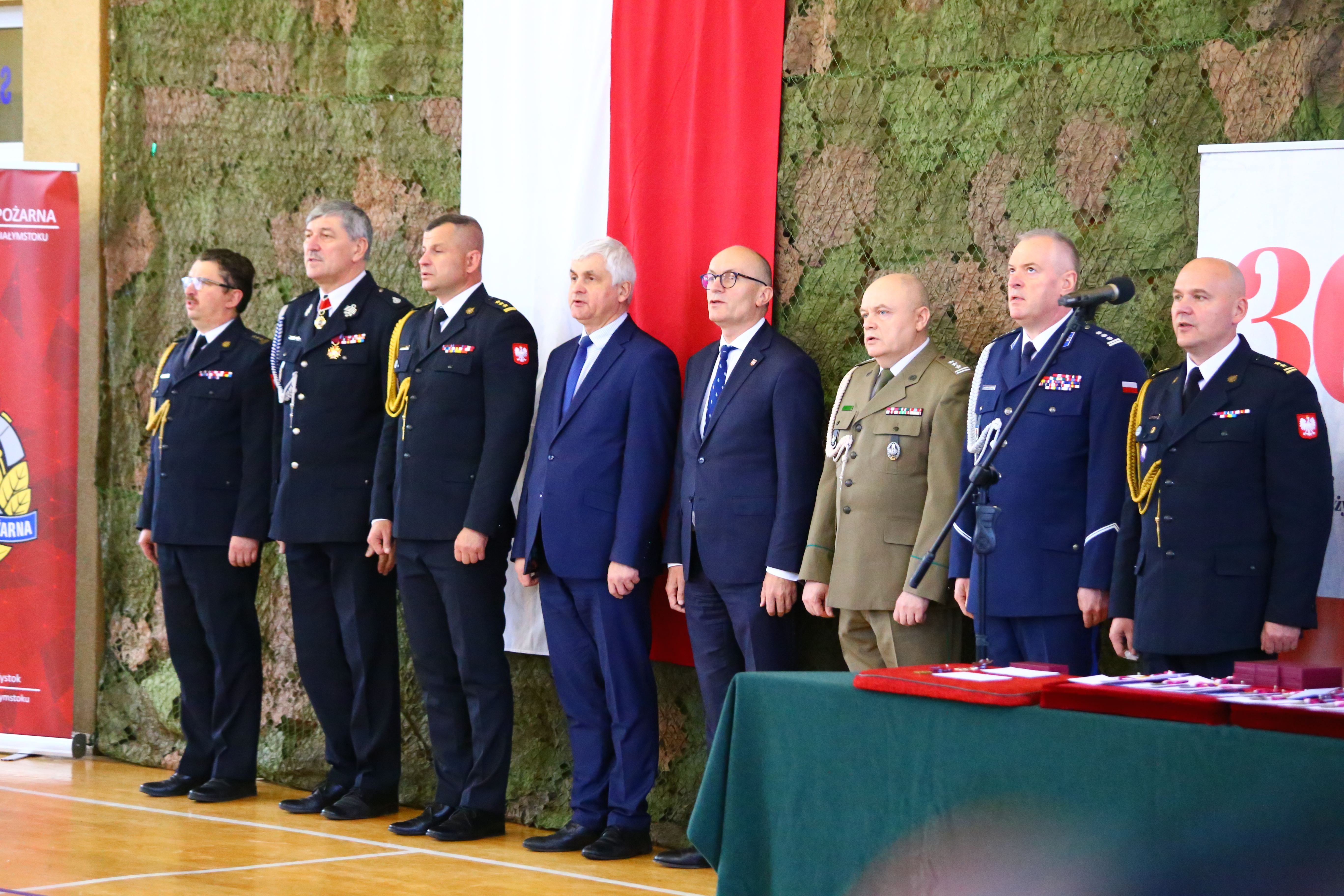 Podczas uroczystości funkcjonariuszom i pracownikom cywilnym jednostek organizacyjnych PSP województwa podlaskiego wręczone zostały odznaczenia, awanse na wyższy stopień służbowy i wyróżnienia, w tym: