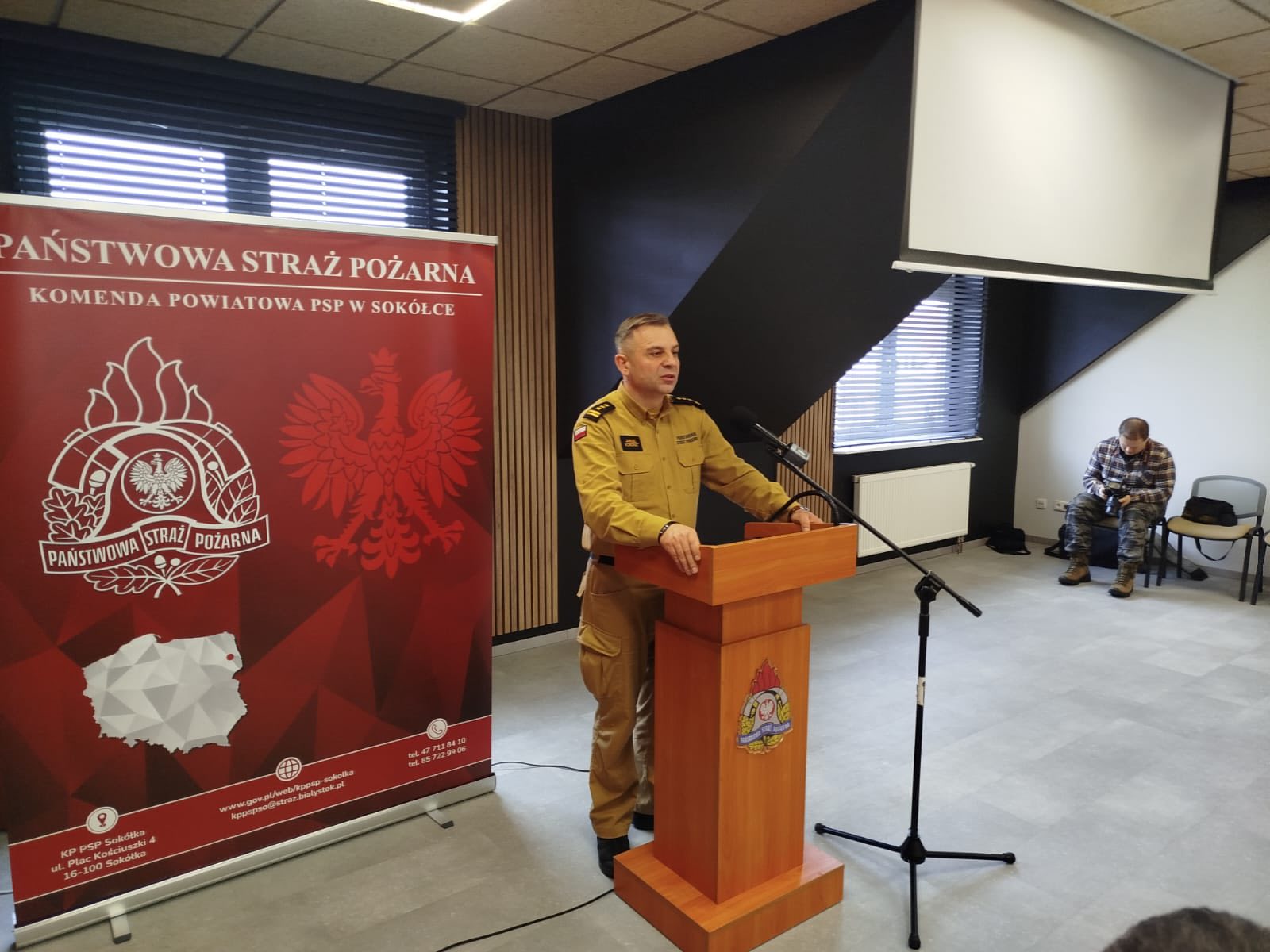 12 lutego 2026 roku w siedzibie Komendy Powiatowej PSP w Sokółce odbyła się odprawa roczna podsumowująca działalności jednostek ochrony przeciwpożarowej powiatu sokólskiego w 2025 roku.