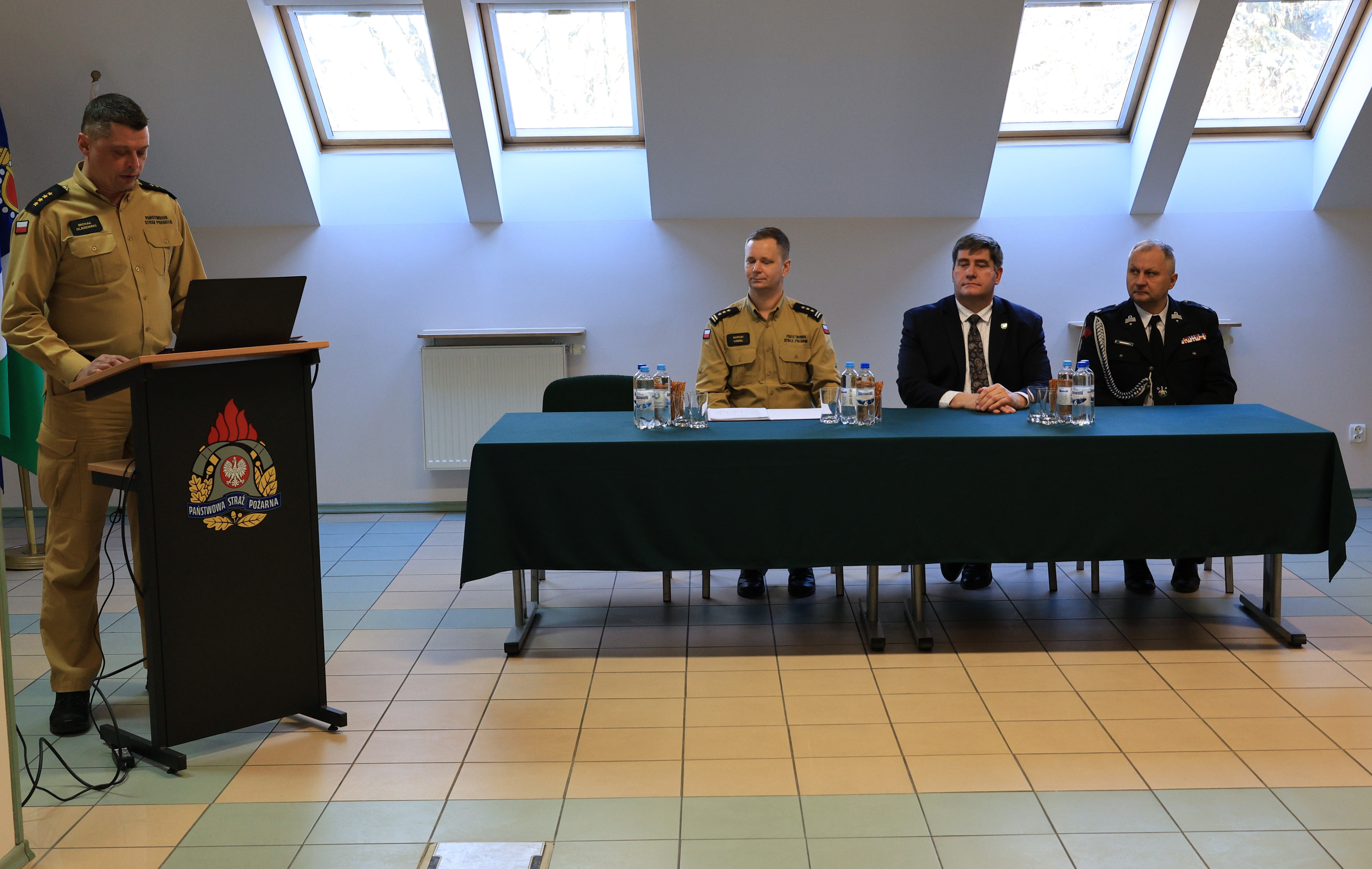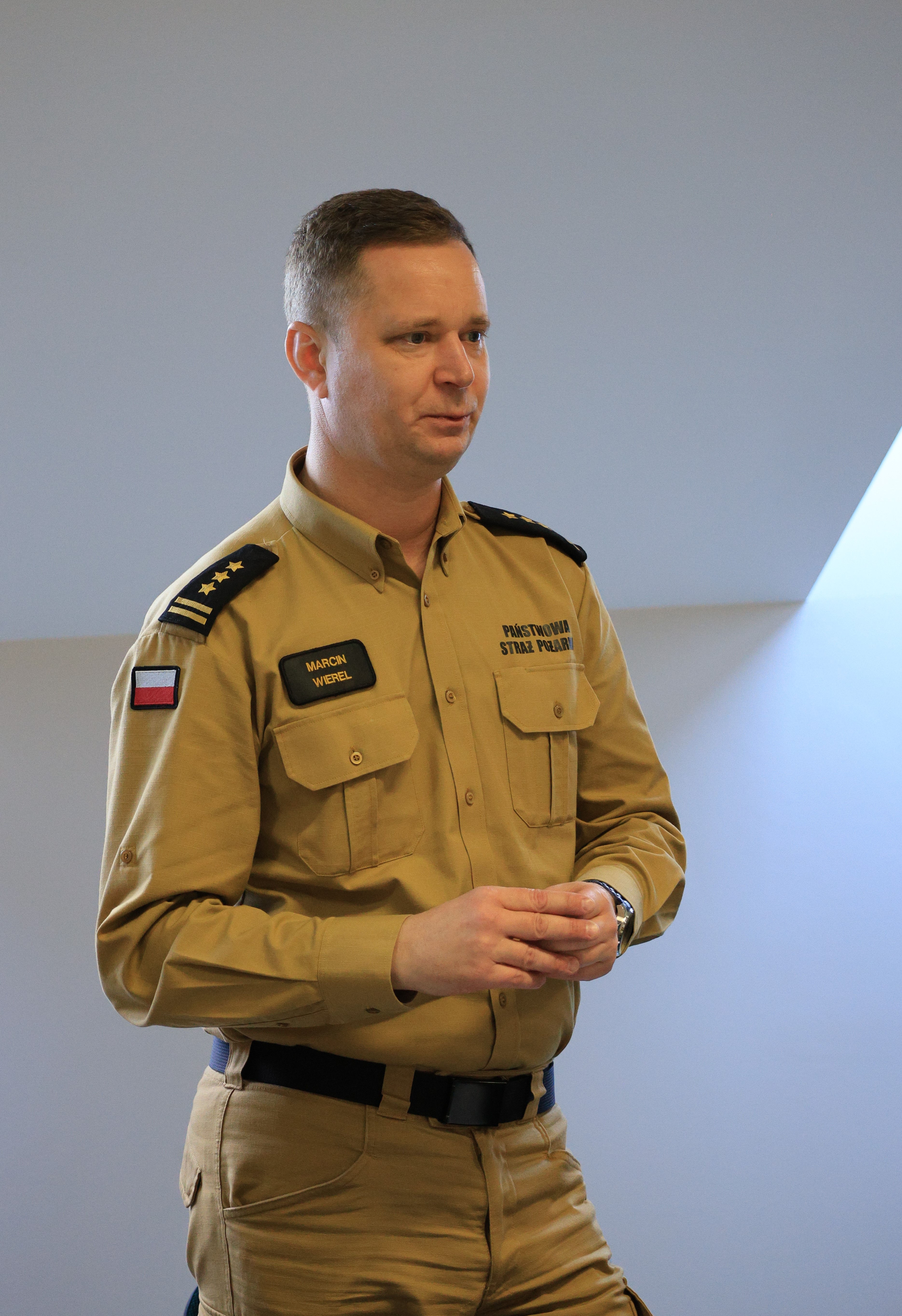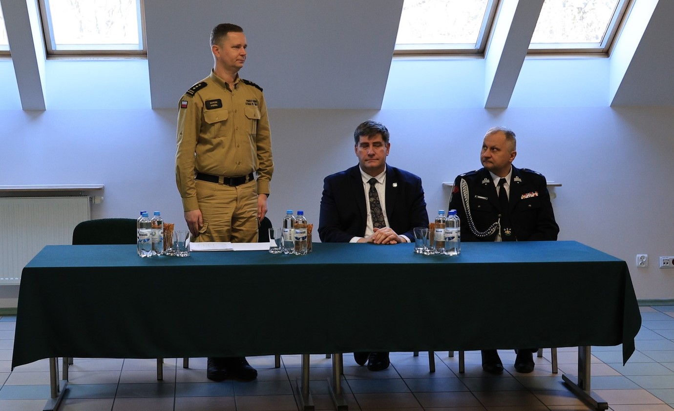 Następnie zastępca podlaskiego komendanta wojewódzkiego PSP st. bryg. Marcin Wierel podsumował funkcjonowanie ochrony przeciwpożarowej w województwie podlaskim, przedstawił zadania do realizacji w roku bieżącym oraz podziękował za dotychczasową współpracę .