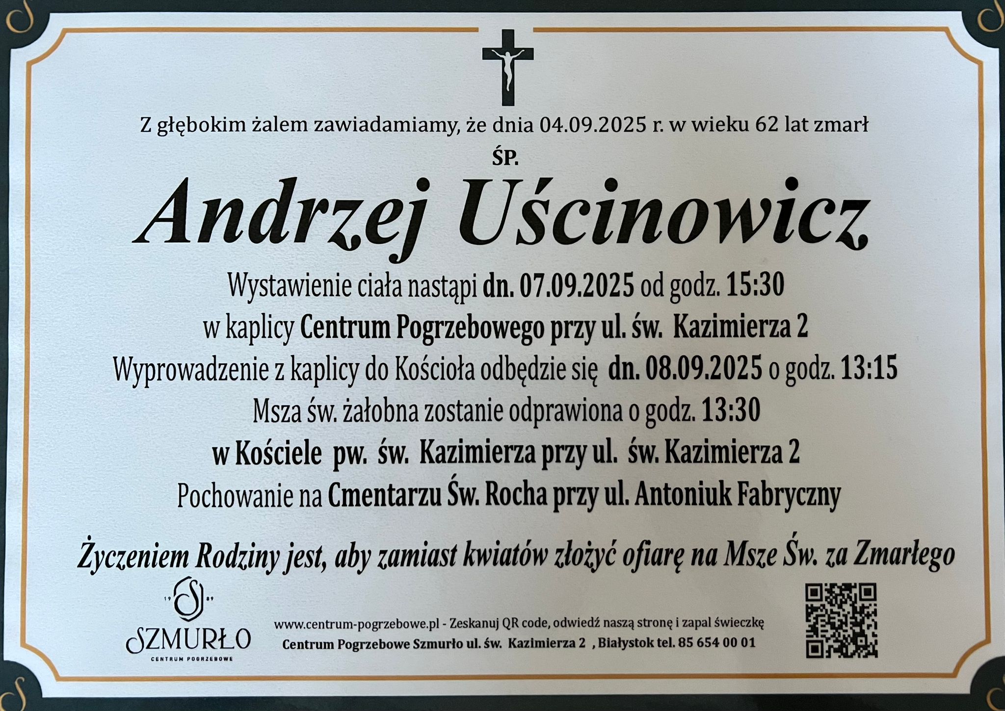 Z głębokim żalem zawiadamiamy, że 4 września 2025 r. odszedł na wieczną służbę st. bryg. w st. spocz. Andrzej Uścinowicz.