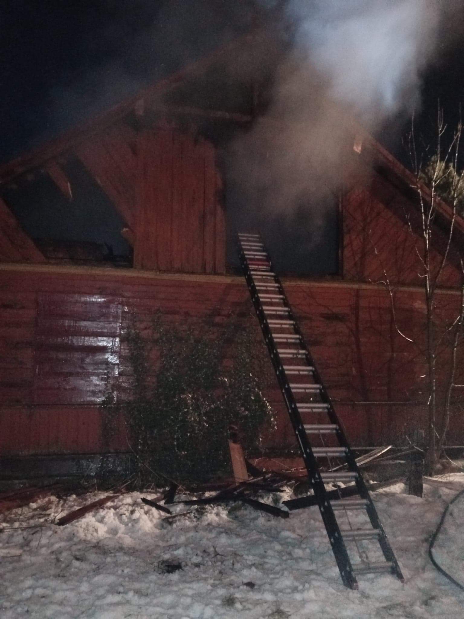 W dniu 25.02.2021 r. o godz. 20.58 Dyżurny SK KP PSP w Wysokiem Mazowieckiem otrzymał informację o pożarze budynku mieszkalnego w miejscowości Miodusy Wielkie gmina Wysokie Mazowieckie. Po przybyciu zastępów straży na miejsce zdarzenia stwierdzono, że doszło do pożaru budynku mieszkalnego drewnianego krytego blachą. Pożarem objęty był cały strych oraz około 2/3 parteru. Ze zgłoszenia zdarzenia wynikało, że prawdopodobnie wewnątrz budynku może znajdować się jedna osoba.