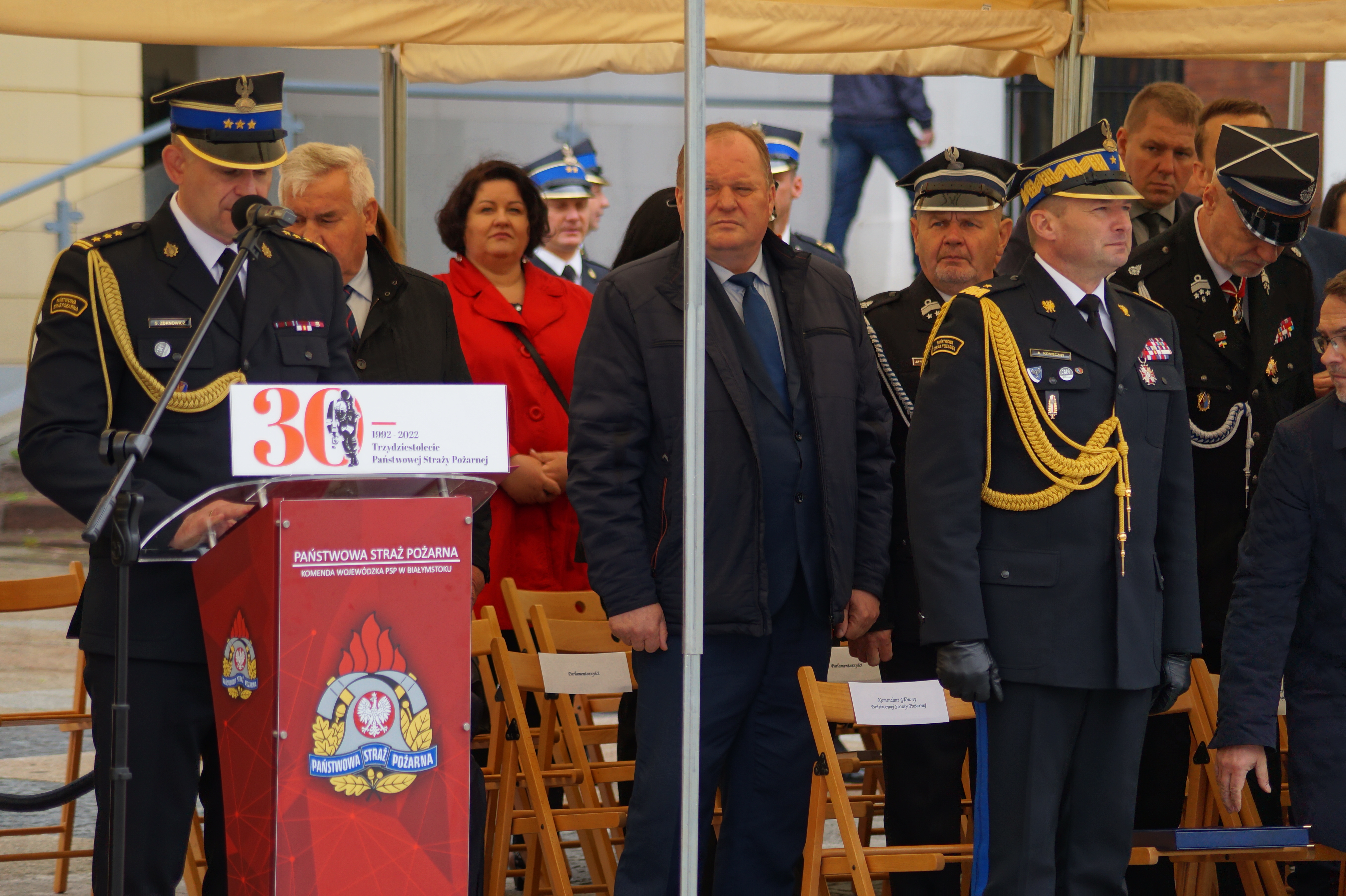 Podczas uroczystości głos zabrał nadbryg. dr inż. Adam Konieczny – „Dzień Strażaka to jest doskonały moment aby w imieniu kierownictwa MSWiA oraz Komendy Głównej PSP podziękować za wasz trud w wypełnianiu misji strażaka i niesienia pomocy potrzebującym, w roku szczególnym, w roku jubileuszu trzydziestolecia powołania Państwowej Straży Pożarnej”.