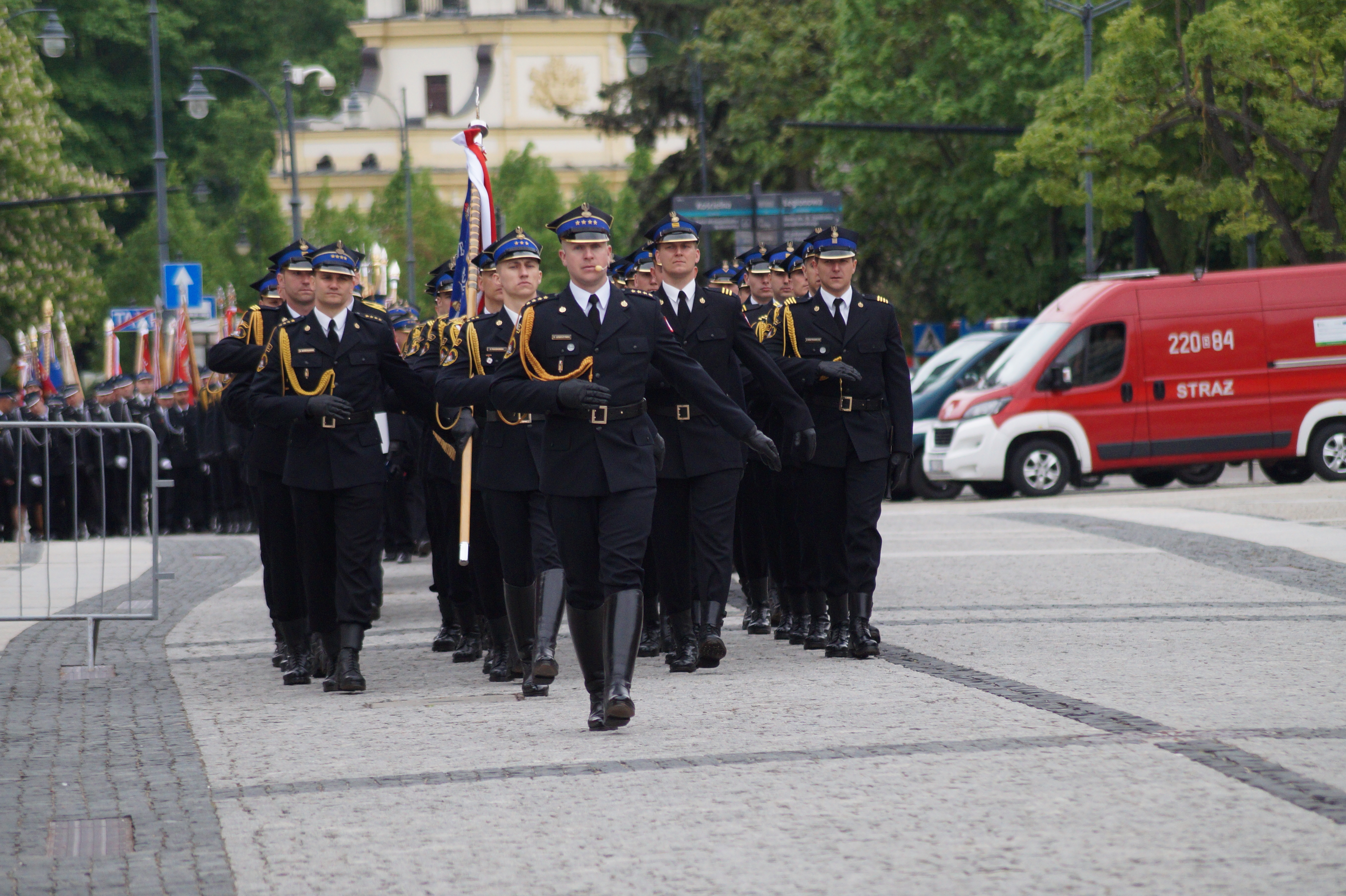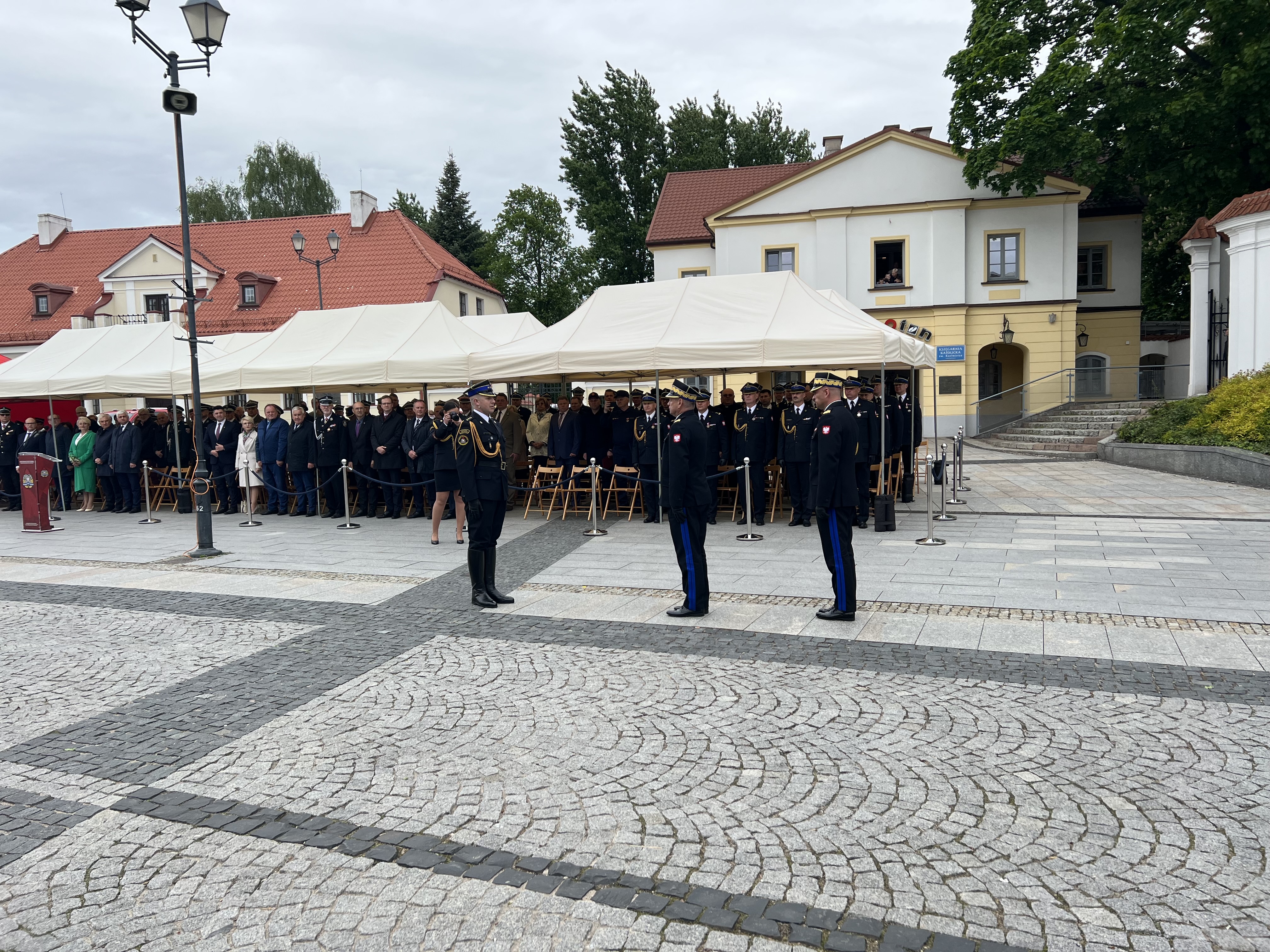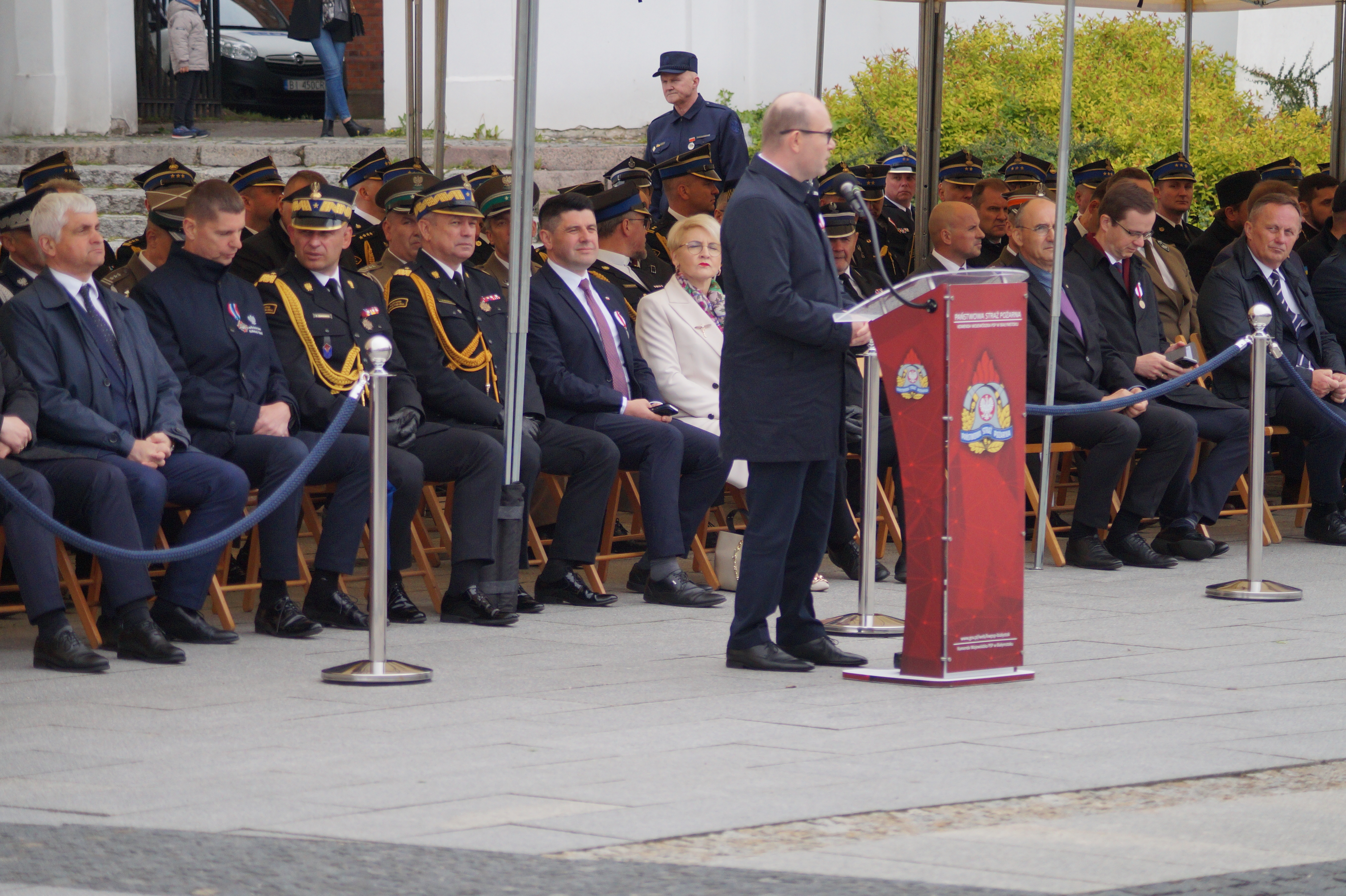 Uroczysty apel z okazji „Dnia Strażaka” rozpoczął się złożeniem meldunku nadbryg. Arkadiuszowi Przybyle, Zastępcy Komendanta Głównego PSP. Następnie miało miejsce uroczyste podniesienie flagi państwowej oraz odegranie hymnu państwowego. Uroczystość otworzył oraz przywitał zebranych gości nadbryg. Sebastian Zdanowicz Podlaski Komendant Wojewódzki Państwowej Straży Pożarnej, któremu w dniu 04 maja 2023r. Prezydent Rzeczypospolitej Polskiej Pan Andrzej Duda, na podstawie art. 51 ust. 5 ustawy o Państwowej Straży Pożarnej nadał stopień nadbrygadiera. Następnie głos zabrał Prezes Zarządu Wojewódzkiego Związku Ochotniczych Straży Pożarnych druh Andrzej Koc.